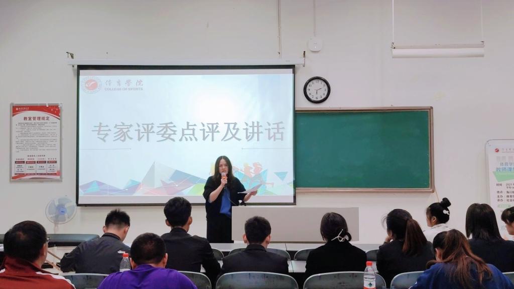 体育学院副院长王晓芳致辞。她指出,教师的成长与进步是学院加快内涵式发展的关键,学习党史具体落实到工作中就是要身体力行、苦干实干,结合当前教育部加快推进双万计划和双一流建设,希望通过教学比赛培养教师爱岗敬业、严谨治学的态度,激发教学热情,创新教学手法,提升教学水平,为成为业务精湛的优秀教师奠定坚实基础。