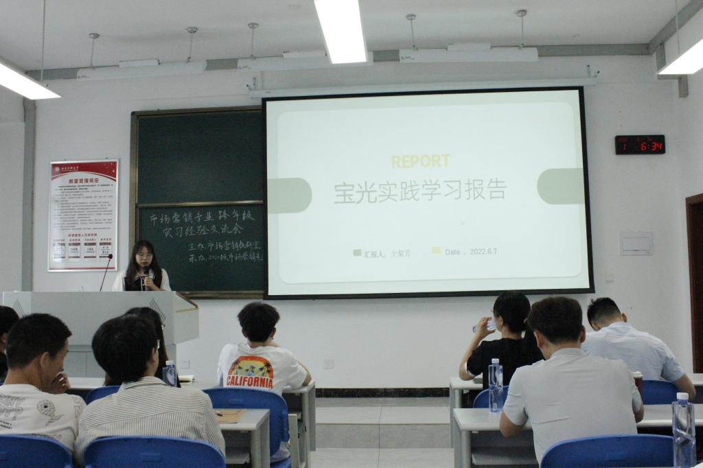 6月7日,人文与管理学院在文渊楼208教室举办市场营销专业宝光药店实践总结会暨跨年级实习经验交流会。本次活动邀请了2018级市场营销专业冯柏宇、吕戈洋、张清伟、谢鑫悦四位同学分享实习经历和收获。市场营销教研室王启凤、李平瑞、王刚、2020级市场营销专业全体同学参与此次分享会。