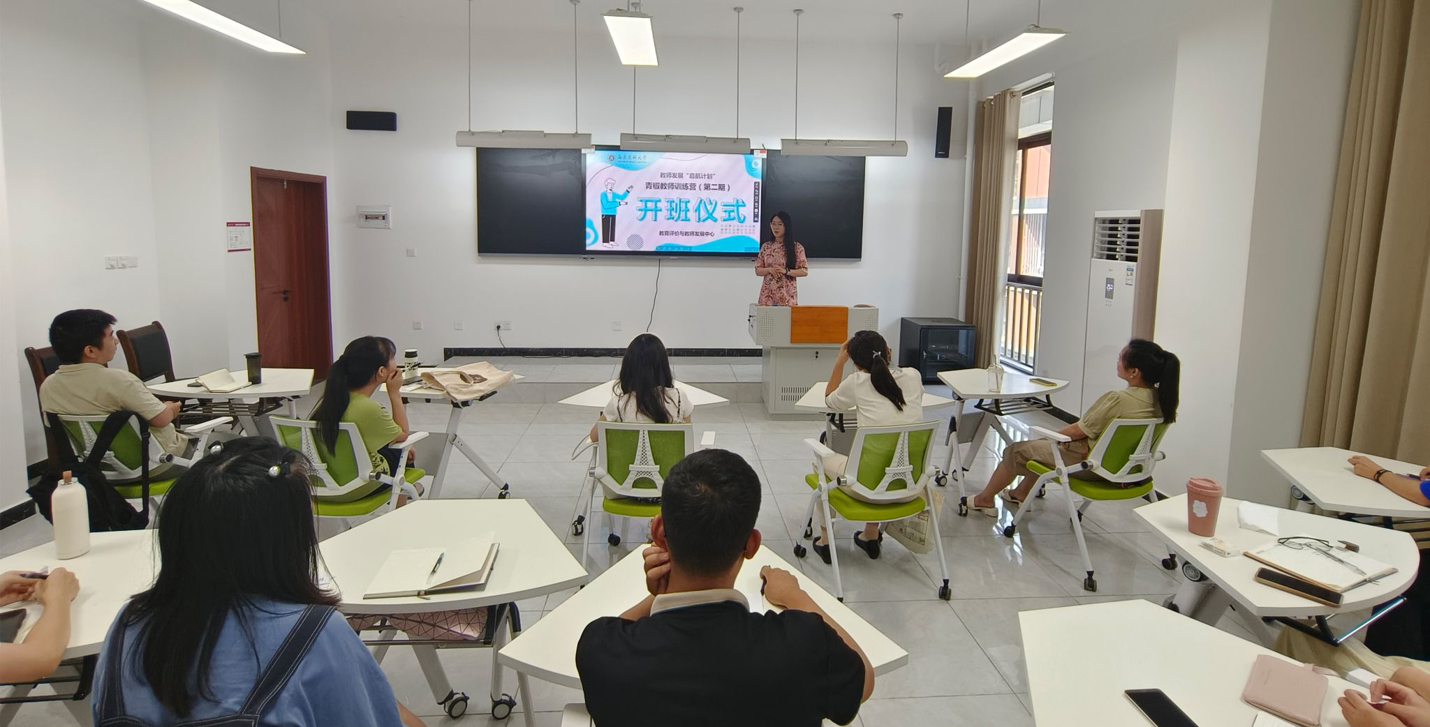为帮助青年教师快速站稳讲台,把握教学原理和规律,筑牢教学基本功,学校组建了教师发展“启航计划”之“青椒教师训练营”(第2期),学员为学校近两年新进专任教师。为了确保培训质量和效果,本期培训继续实行小班教学,人数不超过20人。教育评价与教师发展中心针对新进青年教师特点,在培训方案设计、培训服务管理等方面作了精心安排和充分准备。9月13日,在学校文渊楼422教室组织举行了开班仪式并开展第一次培训。