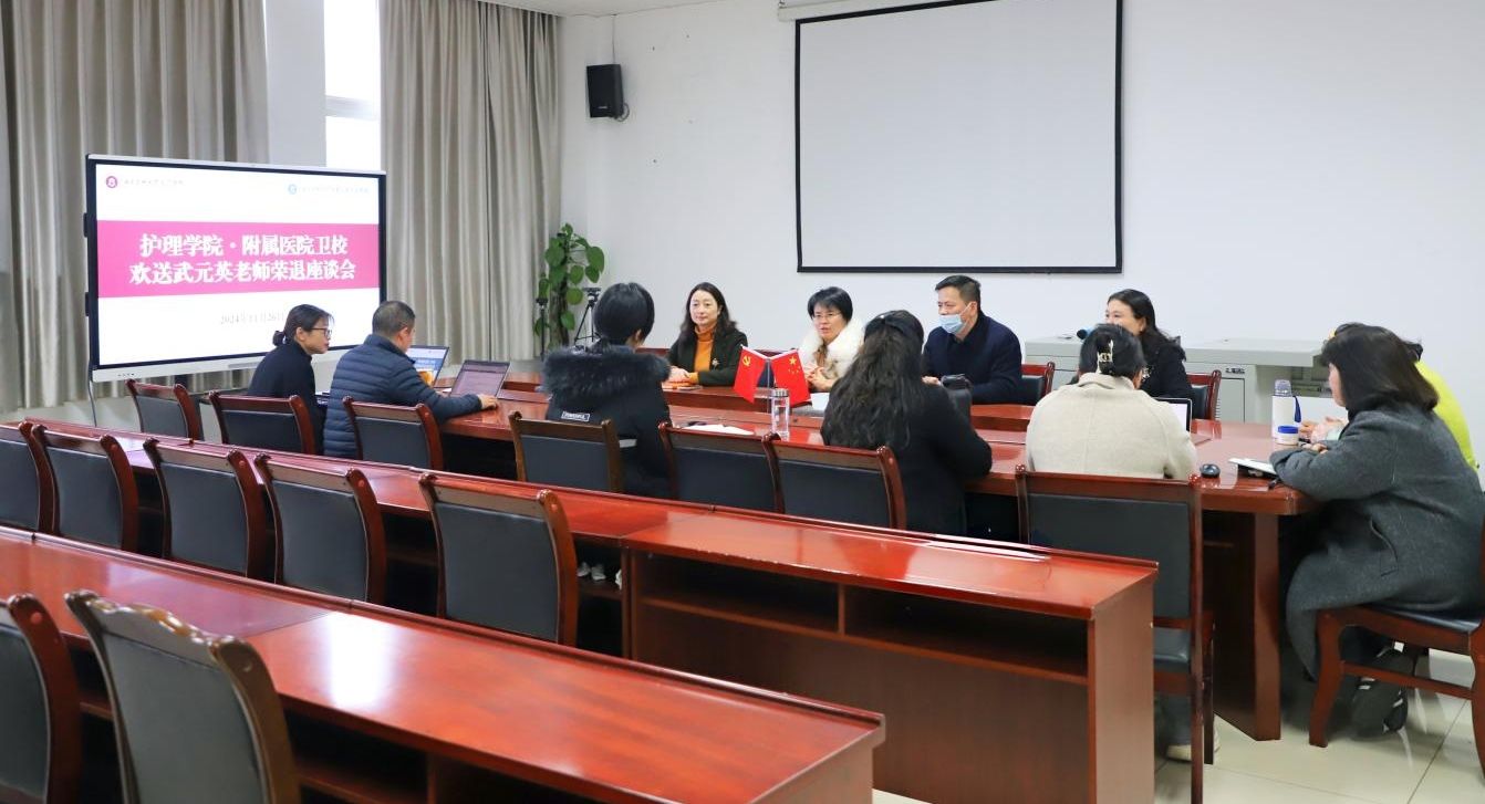11月26日,护理学院·附属医院卫校在海川楼4楼会议室举办了一场温馨的荣退座谈会,为即将荣退的武元英老师送上深切祝福。座谈会由院校党委书记刘文胜主持,全体处科级干部参加,共同见证了这一暖心时刻。