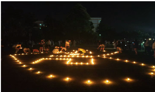 5月12日晚9点,基础医学院2016级一办在青年广场举行“汶川大地震九周年祭”活动。