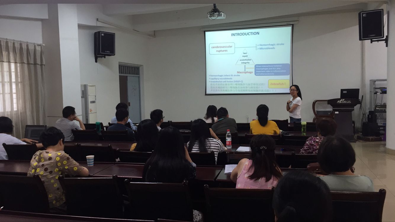 在论坛中,谢翔博士作了题为“斑马鱼在生命科学中的优势及其应用现状”的学术讲座,分别从斑马鱼实验室简介和斑马鱼在生命科学中的应用优势等几个方面介绍了斑马鱼的应用现状及前景。讲座重点突出了斑马鱼在药物毒理学、安全药理学、遗传学以及疾病模型中的重要作用。其后,谢翔博士通过论文“Macrophages Mediate the Repair of Brain Vascular Rupture through Direct Physical Adhesion and Mechanical Traction”,深入解析和展示了斑马鱼在生命科学研究中的优势和价值。参会人员对此次论坛主题极为感兴趣,就相关内容和疑问与谢翔博士进行了交流和探讨。