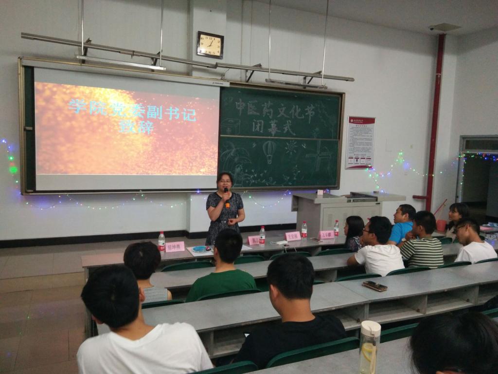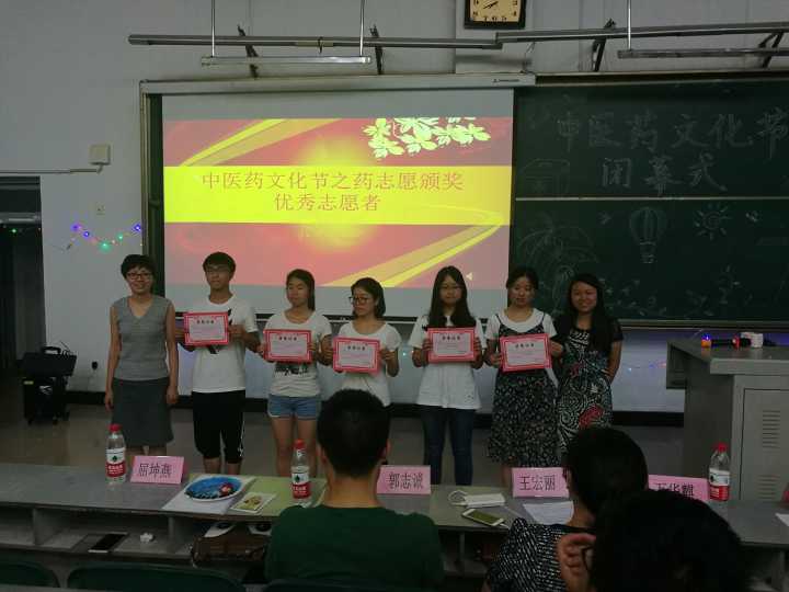 6月9日晚,药学院在城北校区荟文楼205教室举办了第七届中医药文化节闭幕式。药学院党委副书记兼纪委书记王宏丽、党政办公室副主任郭志诚、教务科科长屈坤燕、学生科副科长万华麒、辅导员何双、药学院教师周全以及全校各院系近300名学生参加了此次闭幕式。