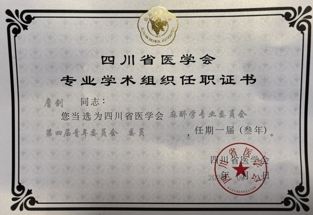 9月12日,詹剑博士再获殊荣,当选为四川省医学会麻醉专委会第四届青年委员会委员兼青委会秘书,进一步拓展了医院在省级学术平台的话语权。
