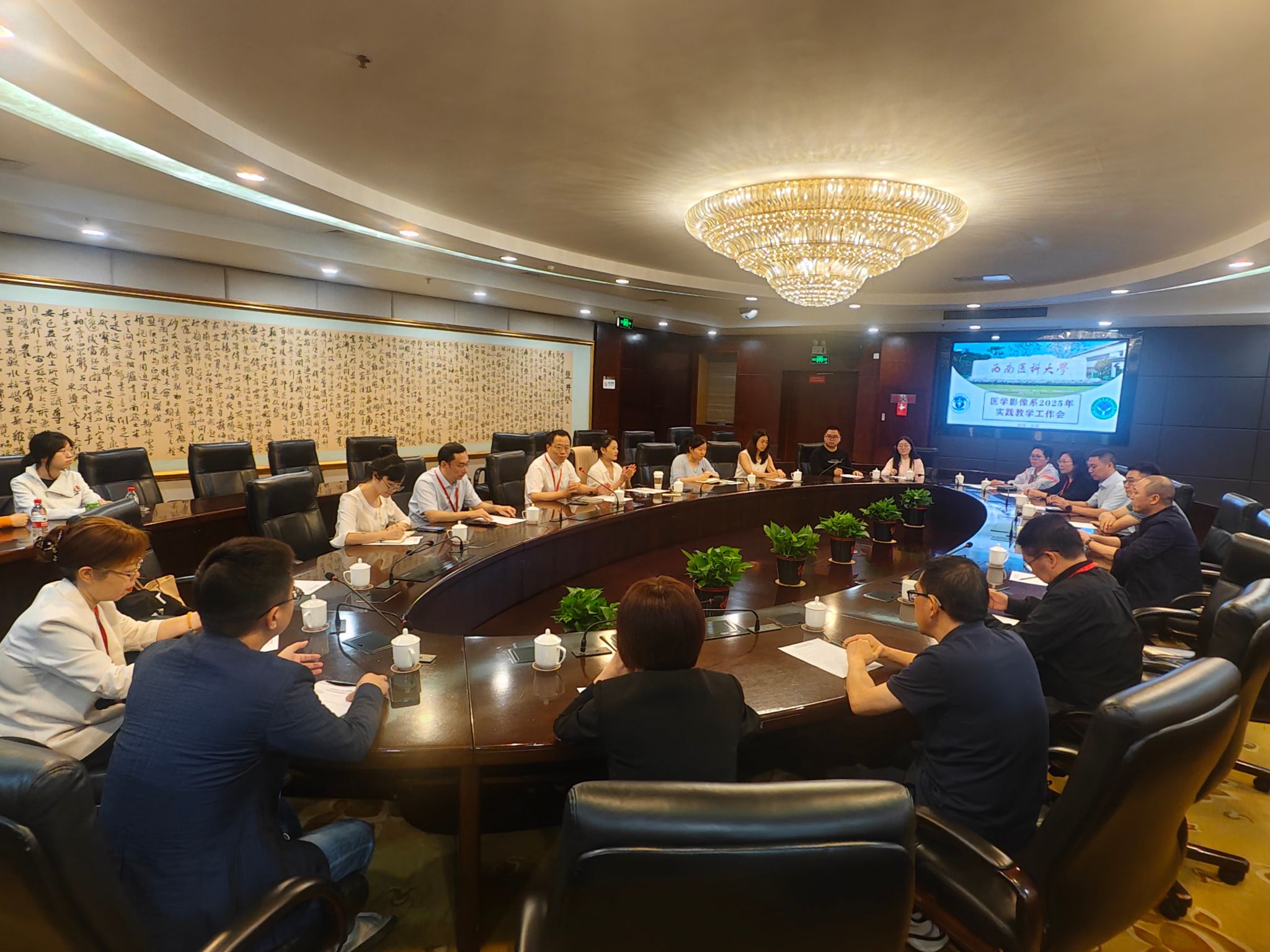 10月12日,医学影像系在自贡召开了2025年实践教学工作会。本次会议由系主任舒健主持,党总支书记刘秀、行政科室负责人、教研室主任和来自省内10家基地医院的影像科室负责人、相关科室实习生管理人员及5位学生代表参加了会议。