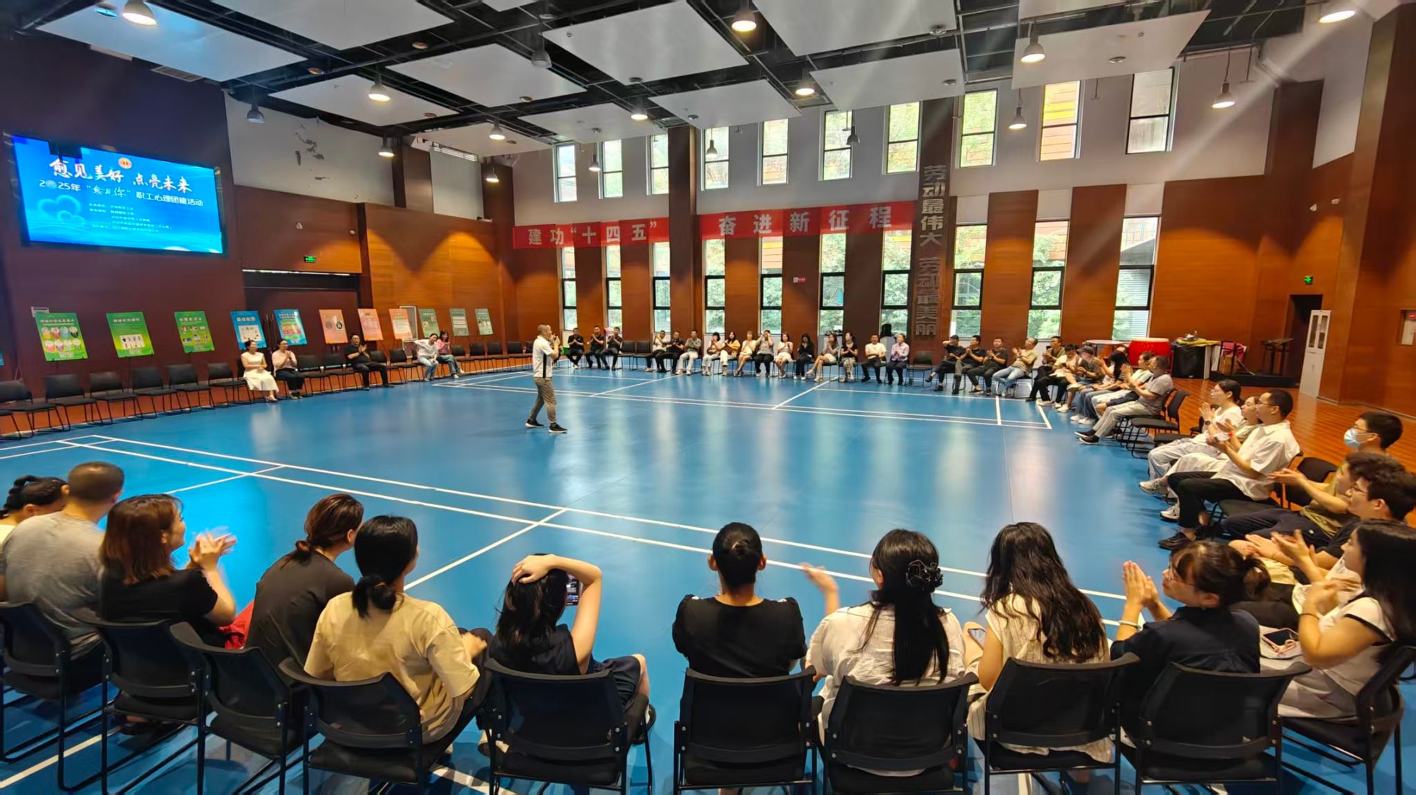活动分为心理测评、科普展参观、体验活动及成果展示四部分。活动特邀心理学副教授于志涛在核心体验环节担任主讲。在于教授的专业引导下,各位参训人员通过一系列精心设计的互动环节,学习了压力识别、情绪管理的方法与技巧。活动注重体验与分享,有效促进了不同单位新同事之间的交流与融合,增强了团队的凝聚力。
