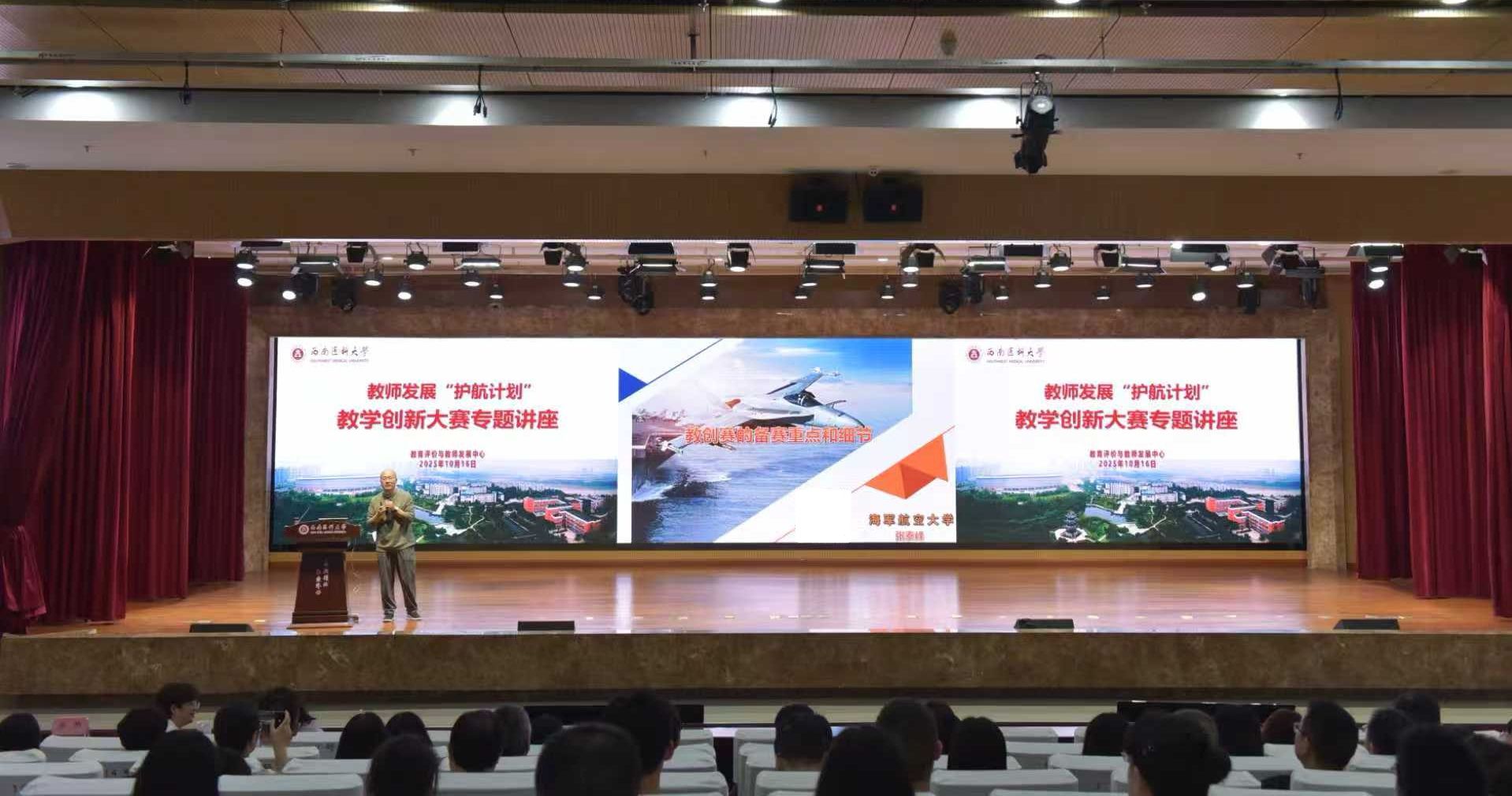 10月16日,学校教育评价与教师发展中心在第一学术报告厅组织开展了教师发展“护航计划”之教学创新能力提升培训,邀请全国高校教师教学创新大赛课程思政赛道一等奖获得者、海军航空大学张泰峰教授到校做专题讲座,吸引来自全校各院系200余名教师参加,培训由教育评价与教师发展中心主任汤艳主持。