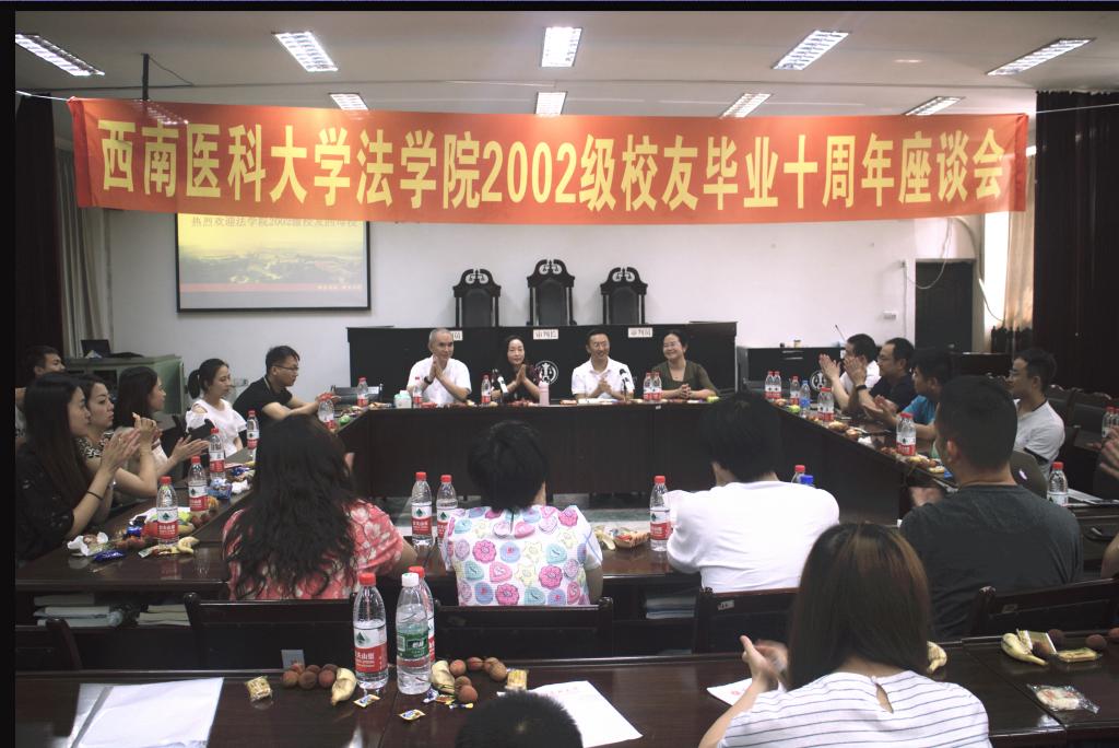 与会的师生与校友们进行了深入的座谈交流。各位校友畅所欲言,回忆读书时光,介绍10年来的成长经历和人生感悟,并结合自己的学习和工作经历,对法学院学科专业建设和发展方向提出了许多中肯的意见和建议,表达了对我校医事法学专业发展的美好祝愿,同时对在校学子寄予了良好的希望,希望广大的法学院学子们把握青春大好时光,刻苦学习,认真钻研,注重传承和创新,把医事法学的传统与优势发扬光大,用自己的才智和拼搏实现人生理想。
