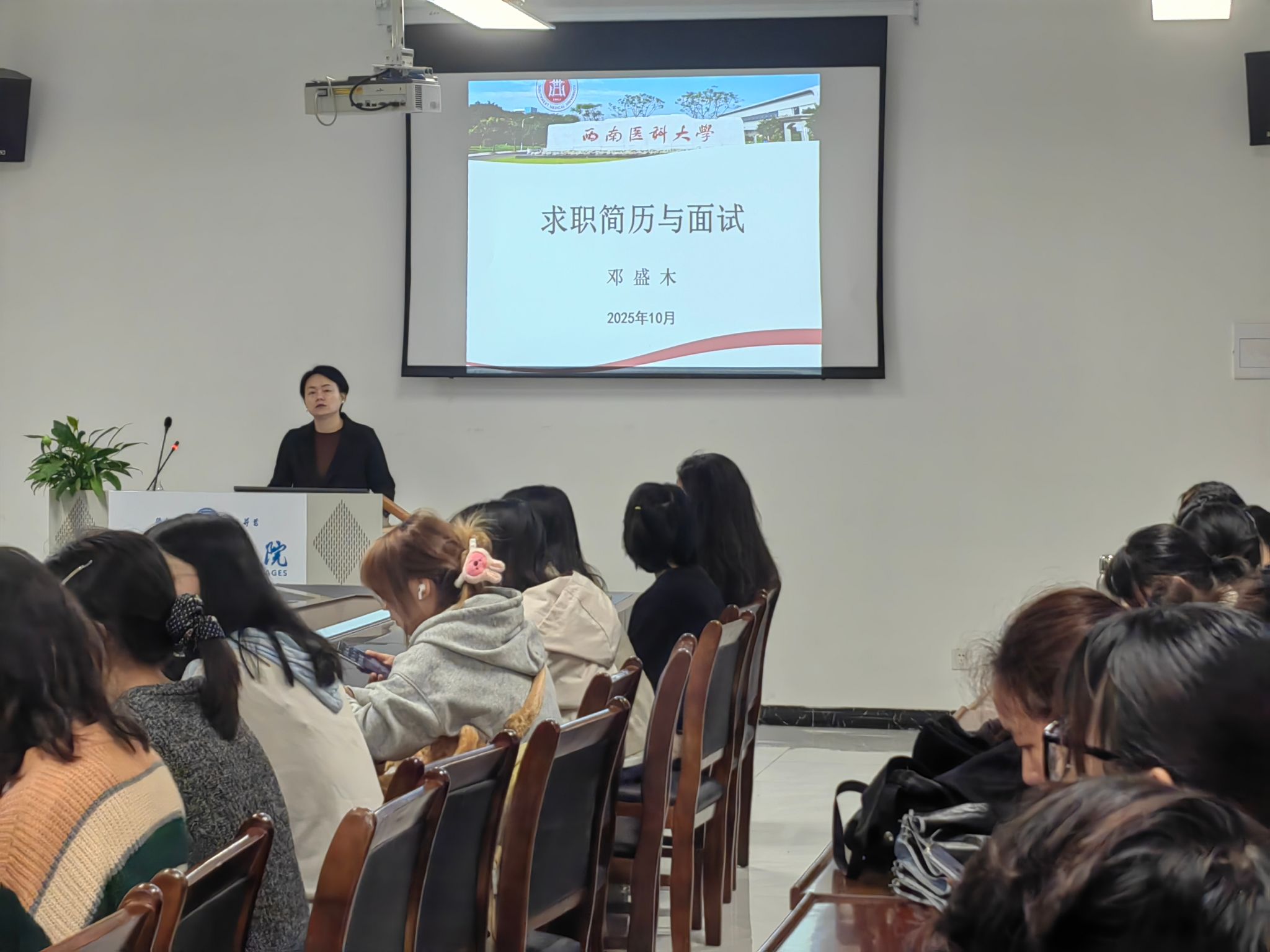 为提升毕业生求职能力,外国语学院于10月21日在文渊楼134会议室开展简历制作与面试专题讲座,由党委副书记、纪委书记邓盛木主讲,英语专业全体2026届毕业生参与。