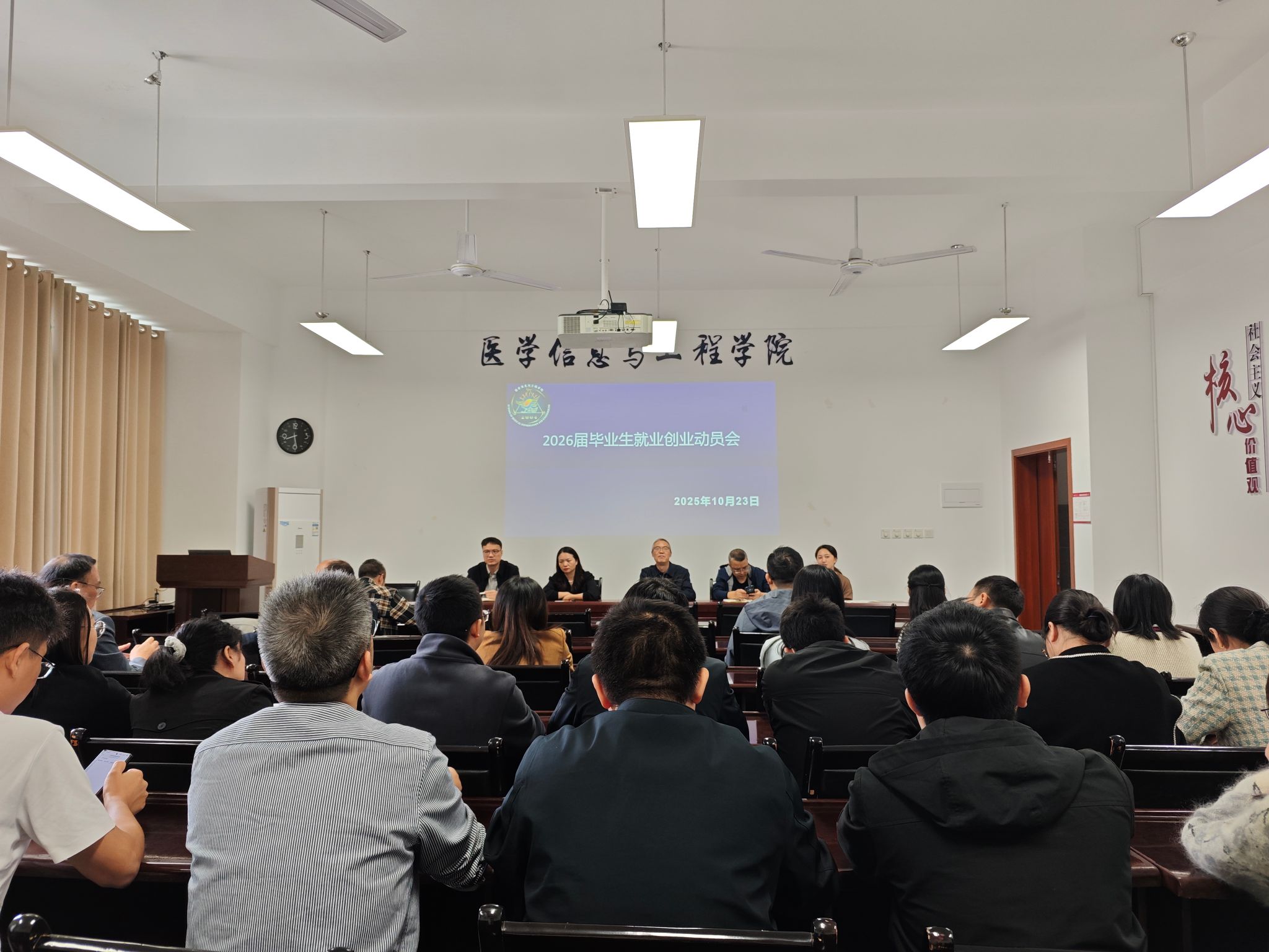 10月23日,医学信息与工程学院在文渊楼325召开2026届毕业生就业创业启动会。会议由学生科副科长刘梦萝主持,学院党委书记何学、院长罗亚梅、党委副书记刘玉清、副院长黄志伟及全体就业指导教师参会,全面启动新一届毕业生就业创业工作。
