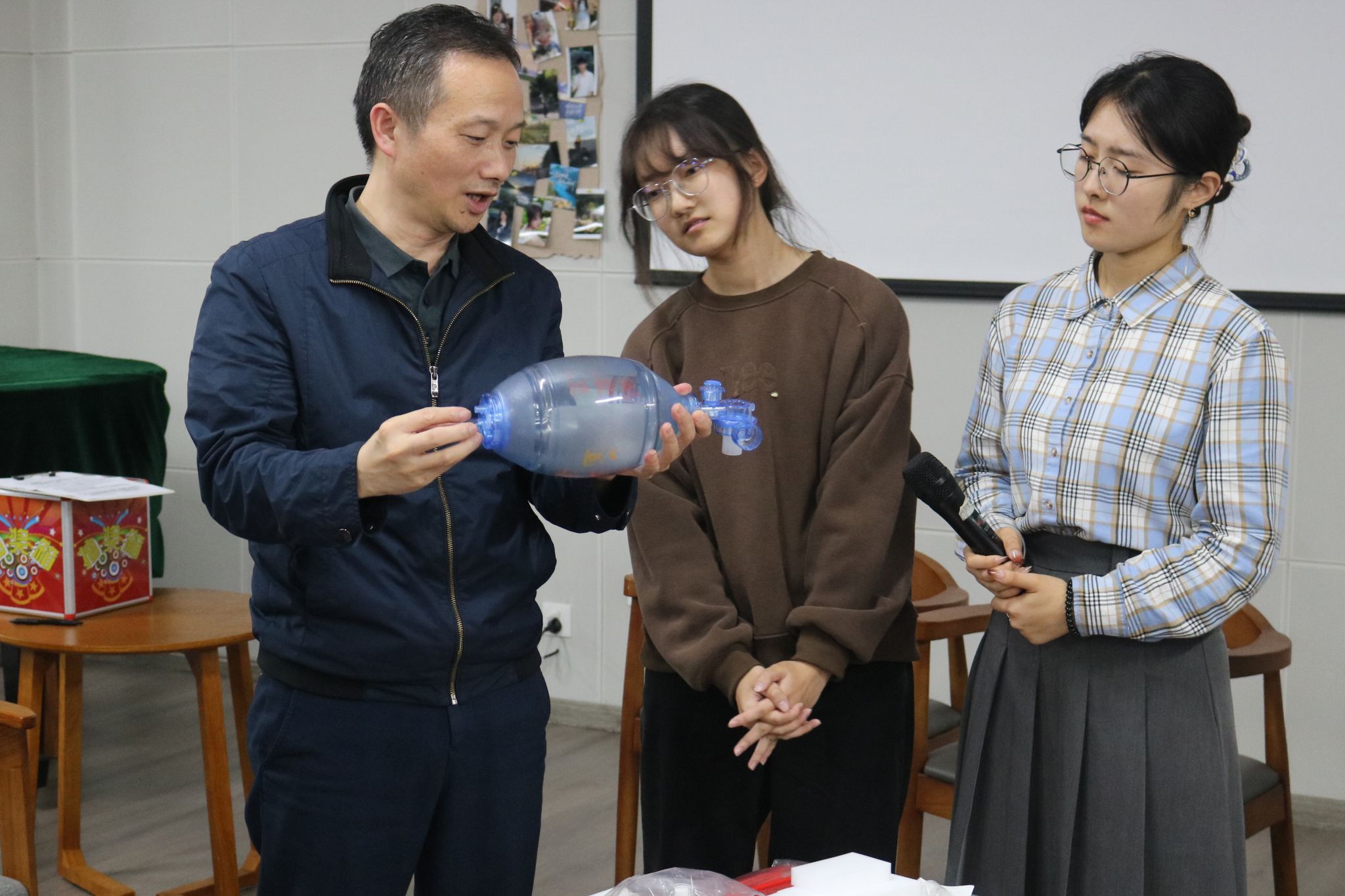 活动包含三项核心环节。“匿名纸条接龙”环节提前收集同学对麻醉学的疑问,由班主任随机抽取并结合经验答疑,既拉近师生距离又消解了新生对专业的片面理解;随后是“班主任职场故事”环节,老师与师兄师姐分享危重症抢救、疼痛管理等一线案例,展现麻醉学科的临床深度与人文温度,让同学明白麻醉是守护生命的关键。在“新手‘小操作’体验”环节,老师先演示医疗器械操作,再邀请同学角色扮演体验,极大激发参与热情,让现场充满探索氛围。