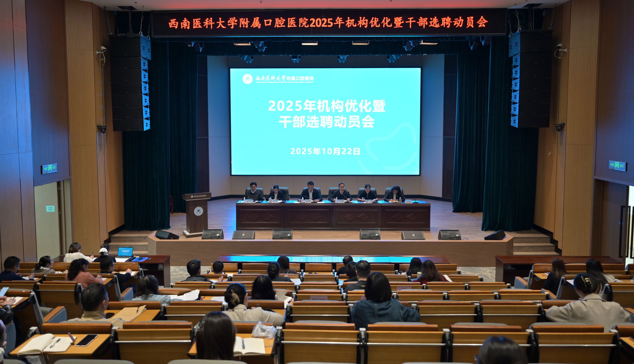 近日,附属口腔医院召开机构优化暨干部选聘工作动员会。医院领导班子在家成员、职能部门负责人、党支部书记、临床医技科室主任、副主任及护士长参加会议。