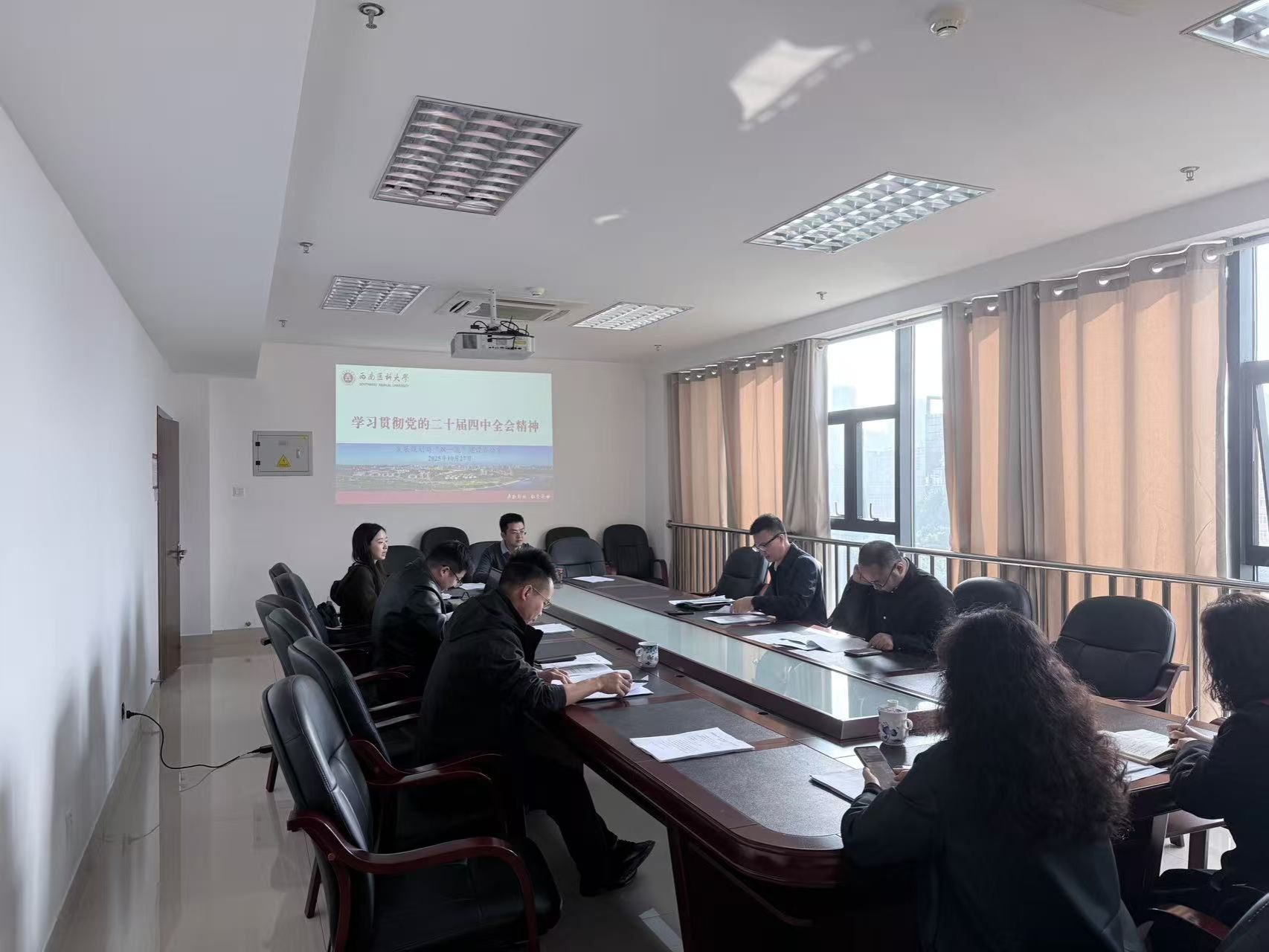 发展规划与“双一流”建设办公室主任董伟对学习贯彻党的二十届四中全会精神提出三点要求:将学习好贯彻好全会精神作为部门当前和今后一个时期的重大政治任务,原原本本学习、逐条逐段领悟,在整体把握的前提下,突出领会好重点和创新点,深入领会好全会精神;切实抓好全会精神的贯彻落实,立足学校发展实际、着眼长远建设需求,扎实做好规划编制的调查研究、专题研究工作,加快推进战略规划研究课题研究,深入研究全局性、前瞻性、关键性、深层次重大问题,科学研判学校“十五五”发展环境和发展趋势,准确把握阶段性特征和发展方向,高质量为学校党委提供决策方案;切实将全会精神贯穿学校规划编制、实施全过程,深入把握中央、省、市关于规划编制的最新要求,接续落实学校“138”发展战略,加快推进学校党委关于制定“十五五”时期事业发展纲要的建议起草工作,全力编制和实施好“十五五”发展规划。