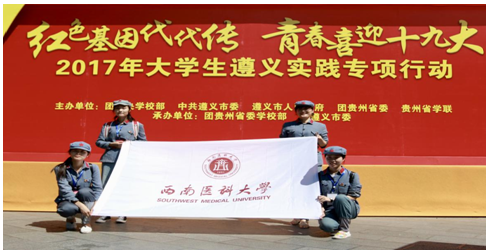 暑假期间,“红色基因代代传•青春喜迎十九大”2017年全国大学生暑期遵义实践专项活动在遵义举行。此次活动由团中央学校部、遵义市人民政府、团贵州省委、贵州省学联等部门联合主办,由团贵州省委学校部、团遵义市委承办。此次活动通过层层筛选最终确定了来自全国27个省、市、自治区的100支团队。我校马克思主义学院颜永容任指导老师,公共卫生学院2015级预防医学专业的王琴、代燕燕、田敏组成红色梦之队以“黔滇川四渡赤水红色旅游资源整合调查研究”项目入围此次活动。