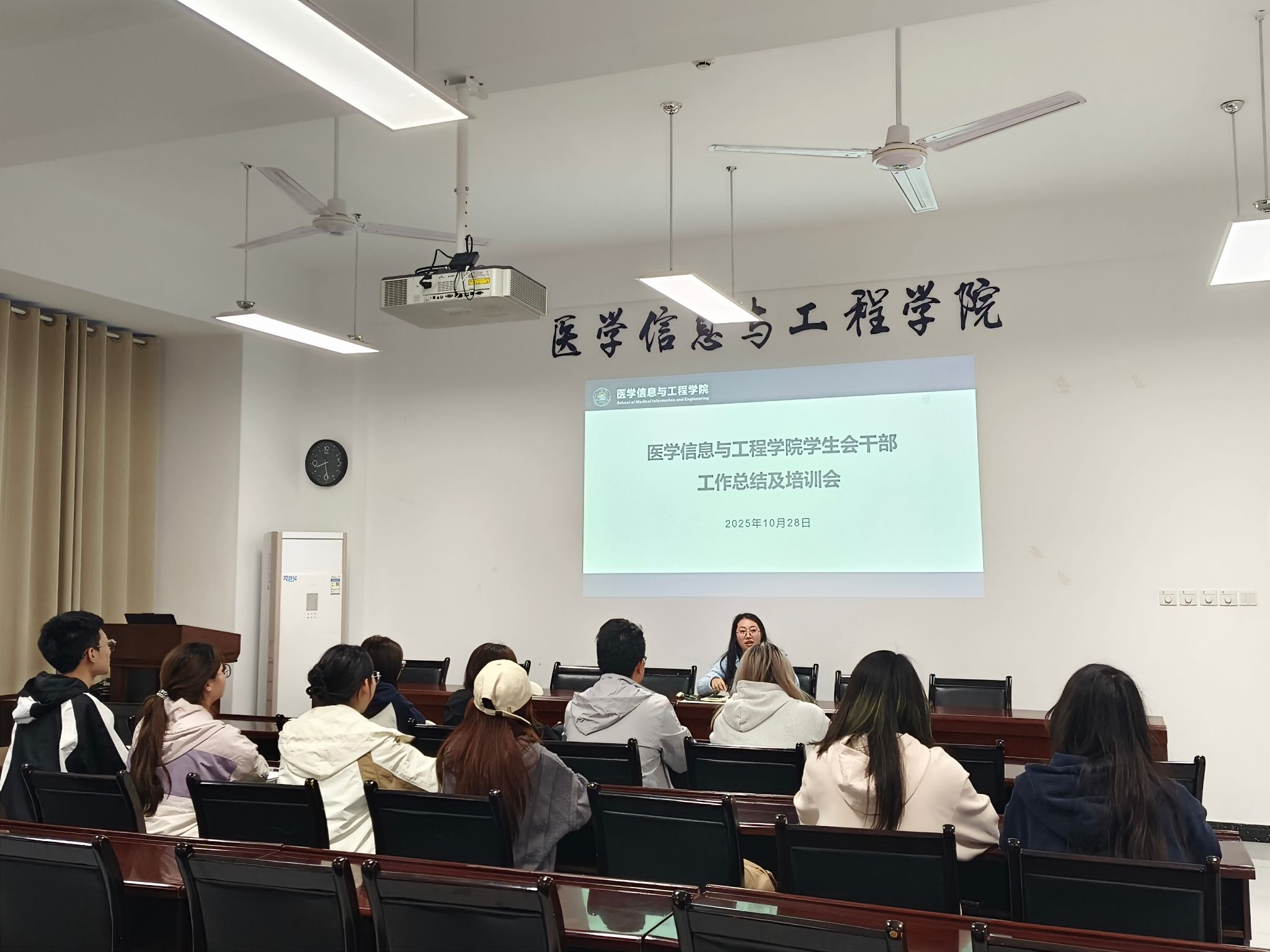 10月28日,医学信息与工程学院在文渊楼325组织召开学生会干部培训会。会议由副主席杨科宇主持,学院分团委书记彭雪梅出席,学院学生会干部参加。