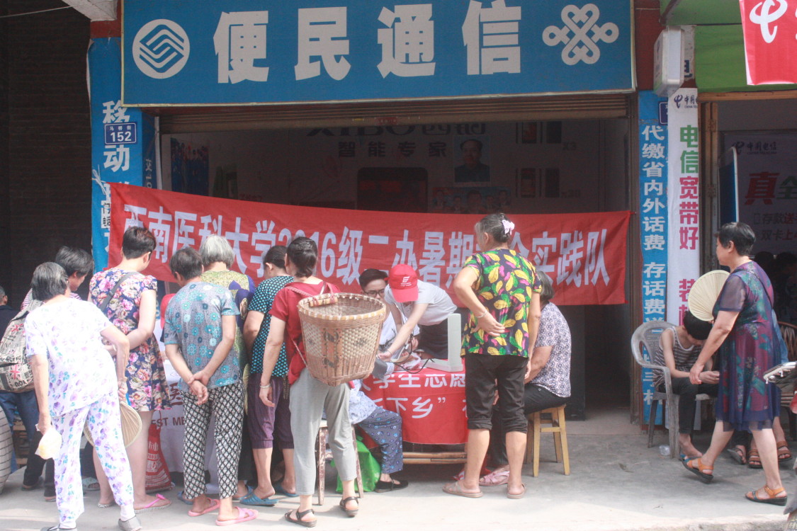 暑假期间,作为学校团委立项的院系重点团队,2016级第二团总支在郝立丽老师的带领下,到泸州市纳溪区营地村、银地村、马桥村、龙马潭区阳高村开展以“农村医资力量调研”为主题的大学生三下乡活动。