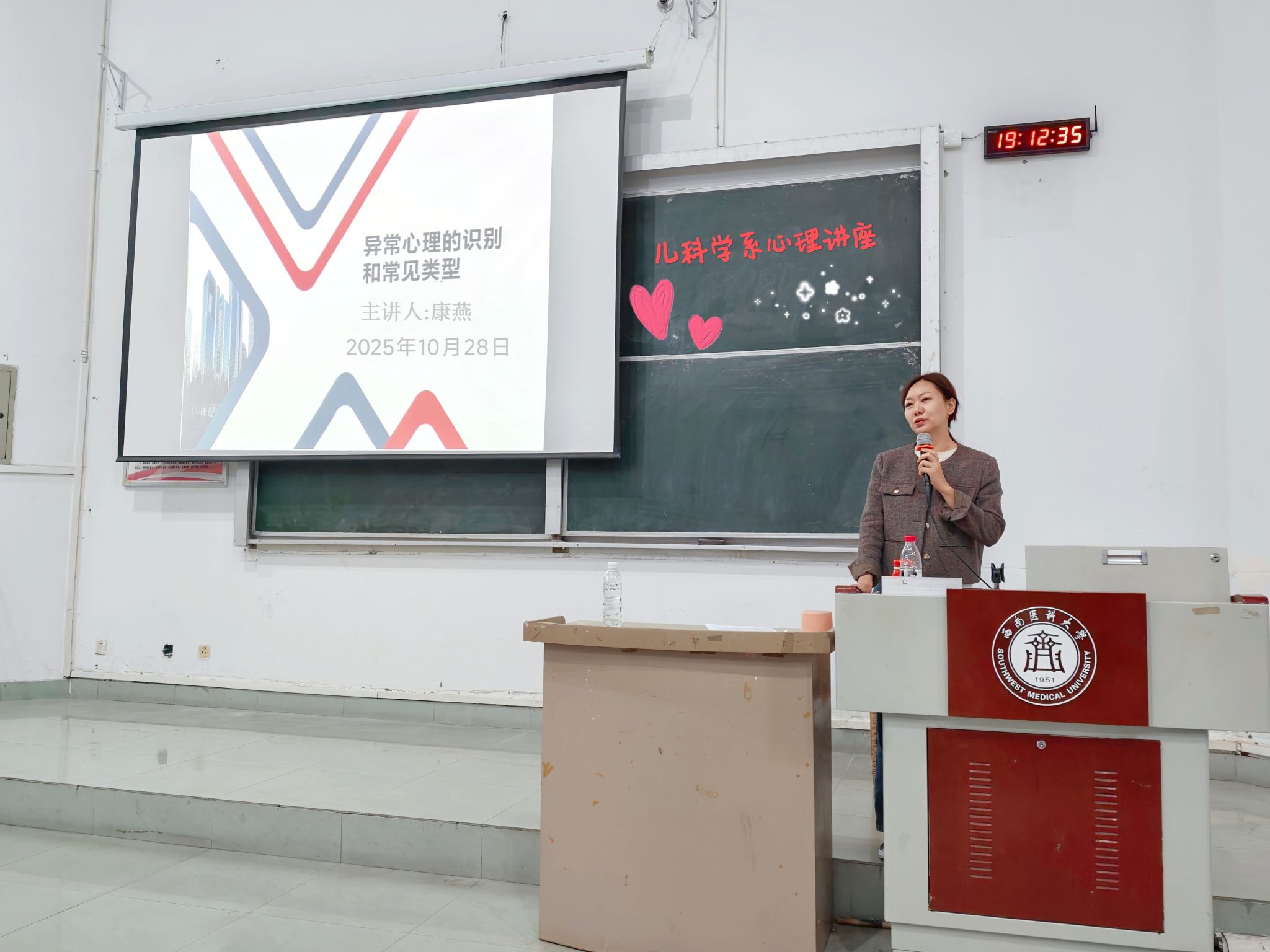 10月28日,儿科学系在明理楼301教室开展了“涵养心源 向阳成长”主题心理讲座,特邀院系心理健康辅导站指导老师康燕主讲,300余名儿科学子踊跃参与。