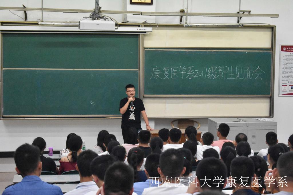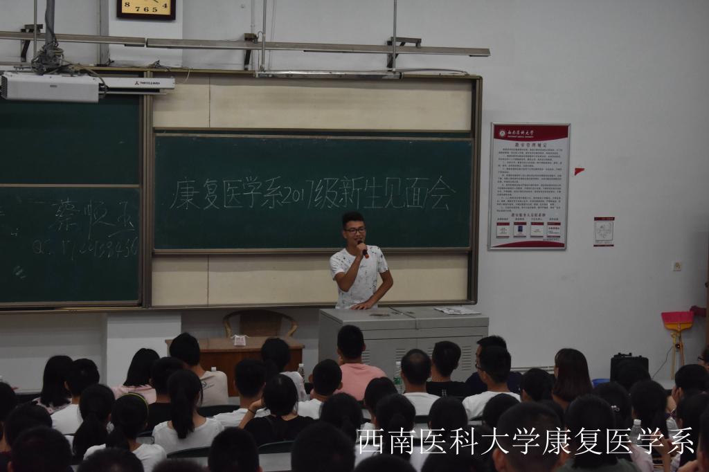 2016级1班谌涛同学主持了本次见面会。赵四可代表康复医学系学工系统老师表达了对新生的热烈欢迎,并强调了“创文”期间学生强求和工作的部署;接下来,学生会主席向雨娟、自律会主席刘文峙、团支部副书记杨雅雯、助班代表廖鹏分别代表学生组织对同学们提出相应要求。老生代表刘梓涵、向红阳、龚群杰等同学作为优秀学生代表分别与新生们分享了个人的学习和生活经验。在新生的自我介绍环节,许多新生勇敢表现了自己,向同学们带来了唱歌、Rap等才艺表演。
