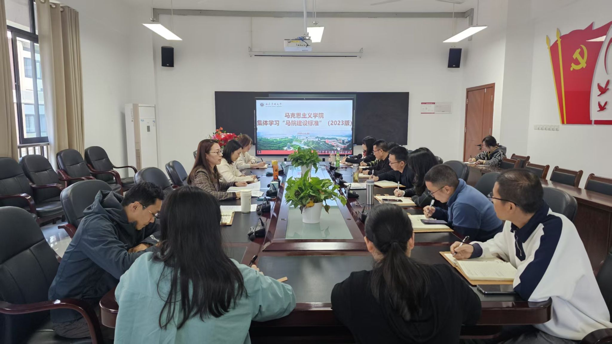 10月30日,马克思主义学院在文渊楼432会议室召开专题会议,集体学习研讨教育部《普通高等学校马克思主义学院建设标准(2023年版)》。本次学习会由院长黄晓利主持,学院各教研室主任、教学秘书参加了会议。