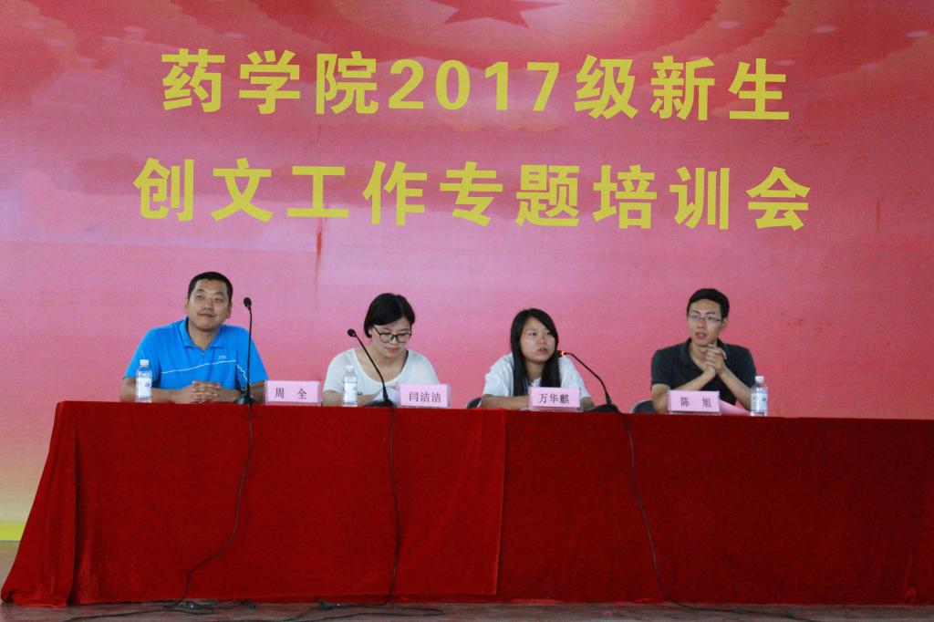 为让药学院2017级新生深入了解泸州市创建全国文明城市工作要求,积极响应泸州市创建全国文明城市号召,并认真落实学校党委安排部署的“开学第一课·我为泸州市创文投上最满意的一票”宣传教育活动工作。9月4日,药学院在城北校区稻香苑学生活动中心举办了2017级新生创文工作专题培训会。药学院学生科副科长万华麒、辅导员周全、闫洁洁、陈旭及药学院2017级全体新生参加了会议。会议由万华麒主持。