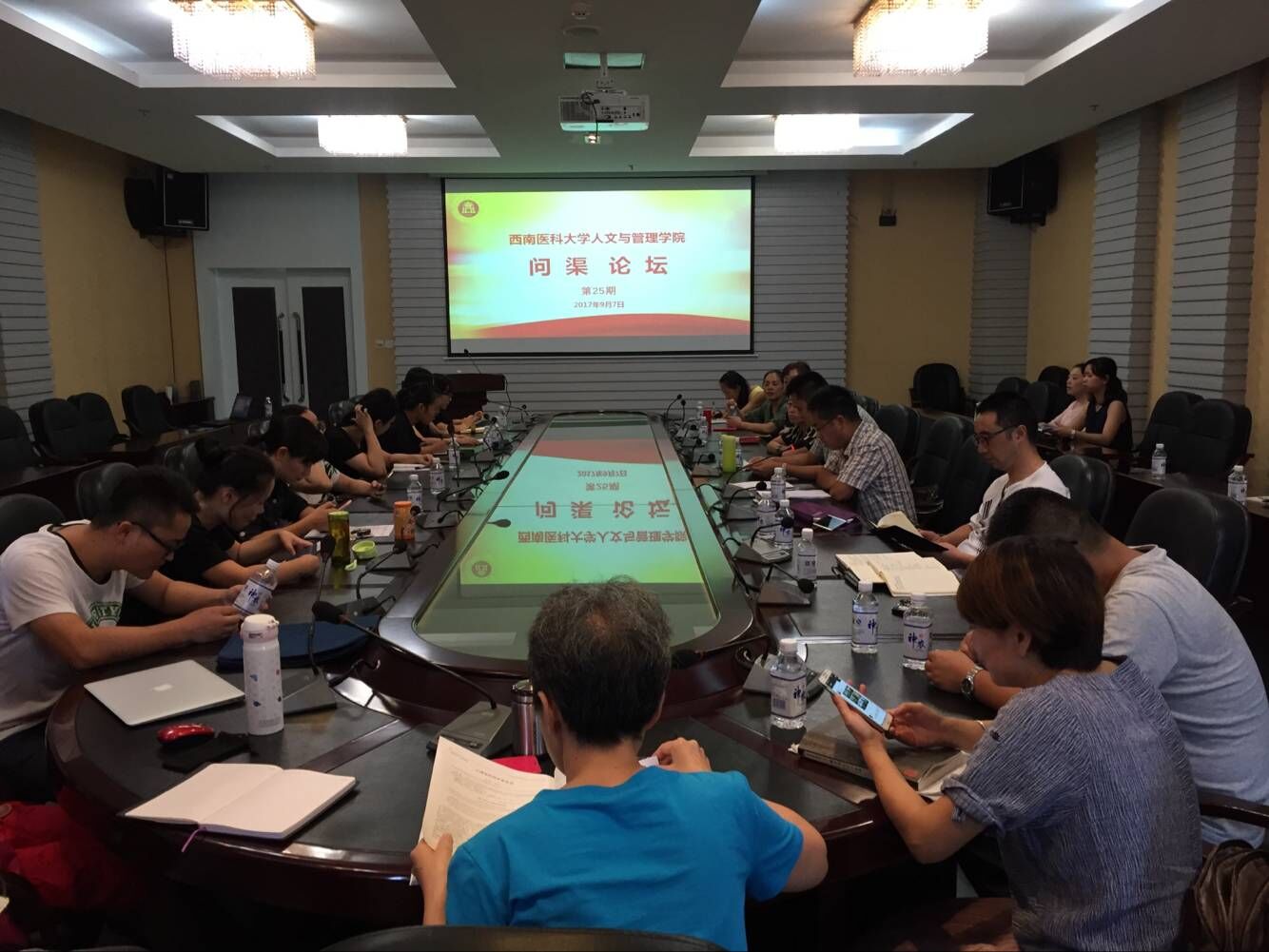 9月7日下午,人文与管理学院在城北逸夫图书馆底楼会议室举办第25期“问渠论坛”专题讲座,全院教师参加了学习与交流。论坛由学院副院长谷满意主持。