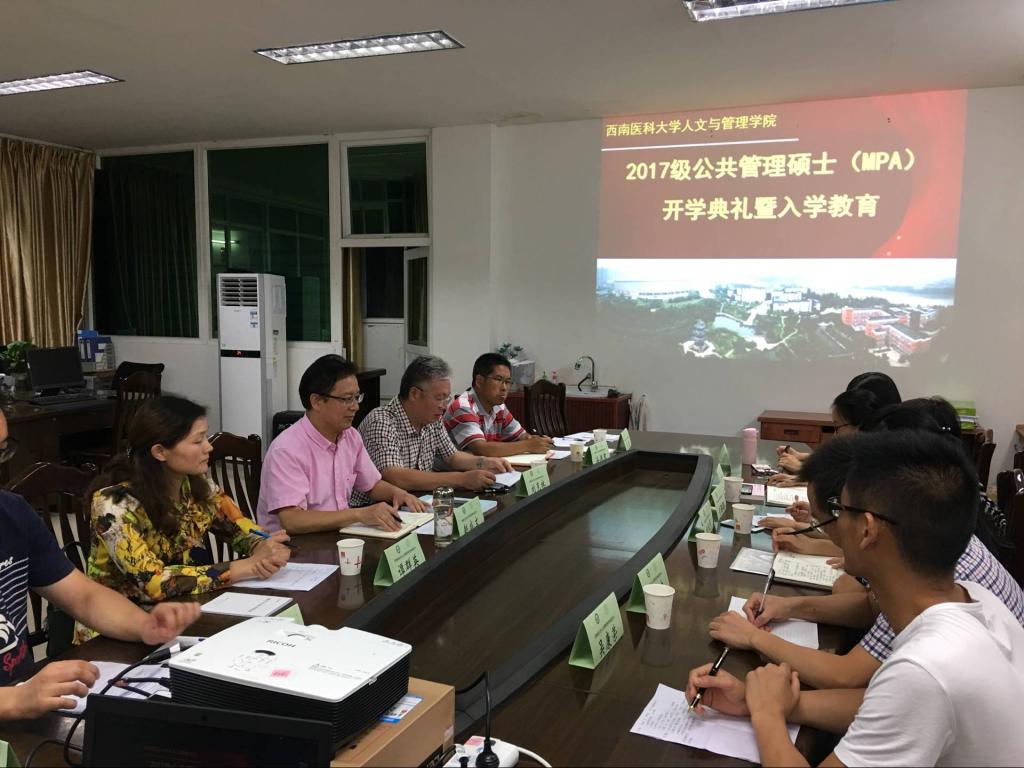 典礼上,院长赵成文教授首先向同学们介绍了西南医科大学及人文与管理学院的基本情况并提出三点希望:第一,希望同学们正确认识MPA;第二,希望同学们尽快转变角色,适应学校生活;第三,希望同学们严格遵守学校的规章制度和我院的具体管理规定。