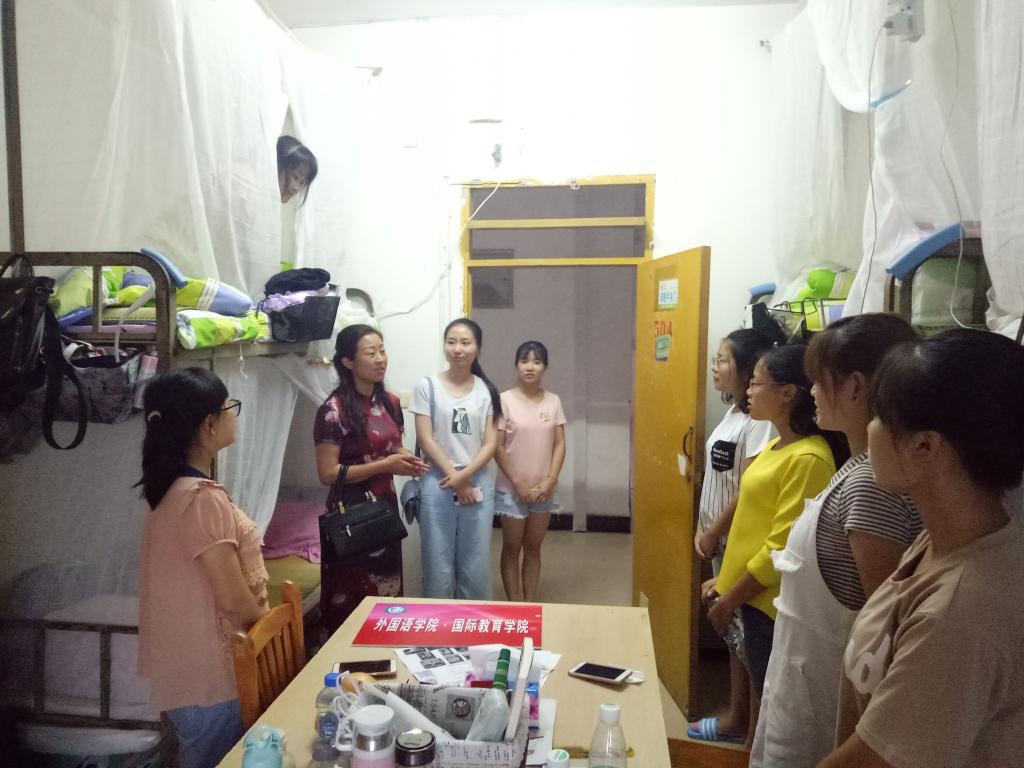 为了让新生尽快熟悉环境并融入校园生活,9月3日学院志愿者们带领新生熟悉校园,不仅向新生们介绍了学校教学楼、食堂等分布情况,还结合自身经验,向新生们提供了尽快融入校园生活的贴心小建议。之后由两位2017级助班主持召开新生见面会,帮助新同学们加强交流、增进友谊。会上,助班向新生们宣讲了我校创文工作的具体要求,传达了军训的注意事项,解答了新生们对于第一学期学业生活上的一些问题。当天晚上7点,肖洁带领辅导员和助班走访了新生寝室,与同学们亲切交谈,关心他们入校以后的生活、思想状况,同时也对创文工作做了进一步强调。