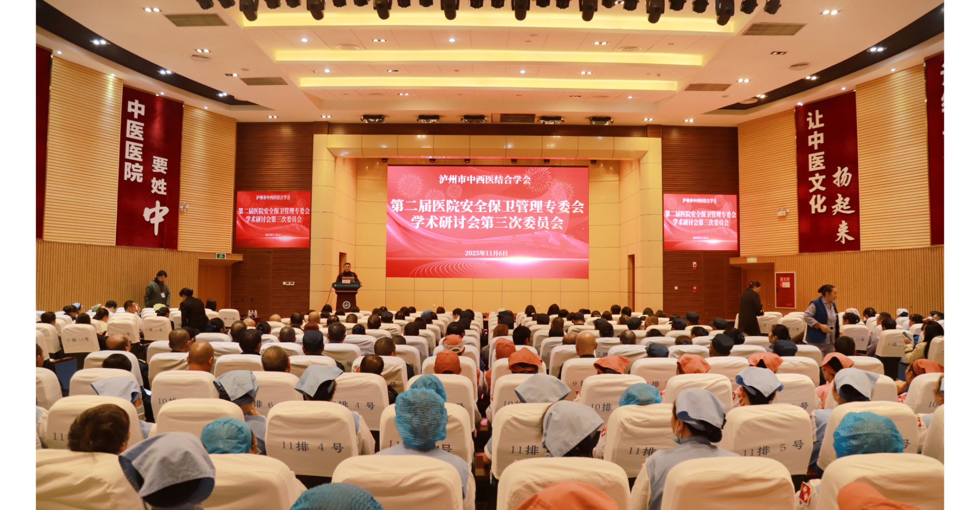 11月6日,附属中医医院召开2025年泸州市中西医结合学会第二届医院安全保卫管理专委会学术培训会,泸州市消防救援局、龙马潭区消防救援大队、龙马潭区红星派出所、医院义务消防员、安全联络员及第三方公司工作人员等400余人参加了培训。培训会由保卫部部长张玉刚主持。