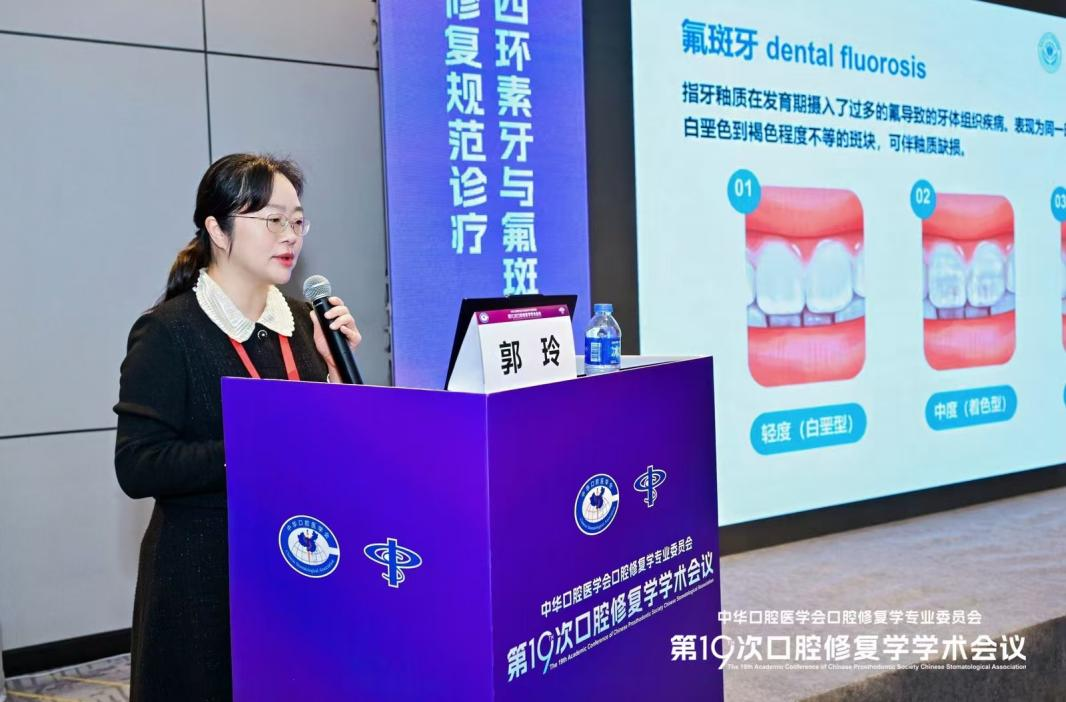 在“四环素牙与氟斑牙的修复规范诊疗汇报专场”中,郭玲教授受邀作专题报告《氟斑牙粘接性能提升策略:从理论到临床实践》,系统分享了我院在牙体硬组织粘接技术领域的创新成果与临床诊疗经验。其研究从材料改性、表面处理到临床操作规范层层深入,为高难度色素牙修复提供了可推广的标准方案,引发全场热烈讨论。