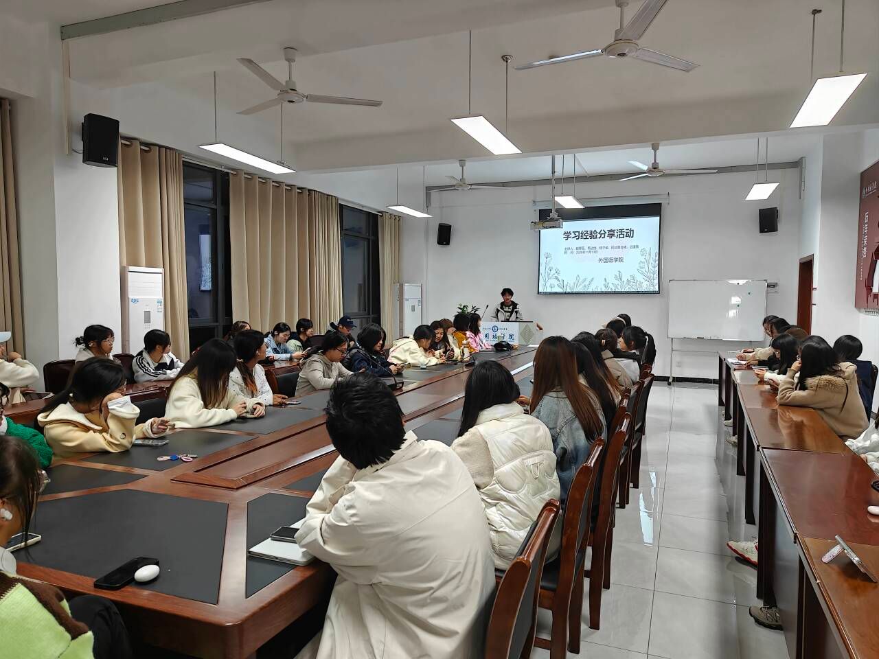 为帮助学生增进知识交流,激发学习热情,外国语学院于11月13日在文渊楼134会议室举办学习经验分享会。会议由学院学生会胡瑞杰主持,外国语学院70余名同学参加。国家奖学金和推免资格获得者赵春茹,国家励志奖学金获得者杨欣悦、杨子渝、阿达莫日喝及吕逢敬等5位同学应邀登台,用亲身经历为学弟学妹点亮前行灯塔。