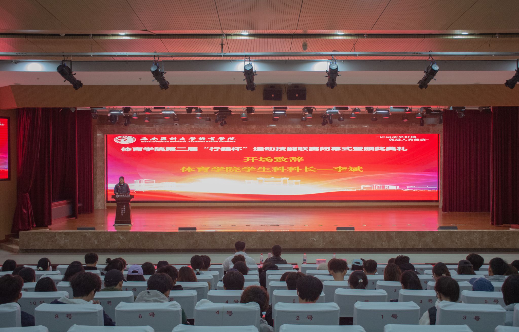近日,体育学院第二届“行健杯”运动技能联赛闭幕式在第一学术报告厅隆重举行。体育学院党委副书记黄莉、学生科科长李斌、分团委书记刘泸、辅导员杨星月及2023级、2024级、2025级参赛学生参加了闭幕式。