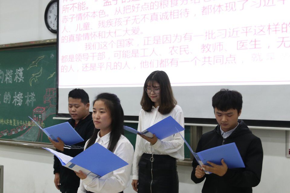 活动中邀请了三名优秀学生代表参与发言。他们在读过《习近平的七年知青岁月》后,无一不被主席“理想高于信念”的崇高精神折服。康复医学系首位获得研究生推免资格的同学胡月讲述了她在大学期间的学习经验和实习见闻。她讲到,康复还没有达到真正的黄金时代,鼓励在这个蓄势待发的时期多充实自己,做好学习规划,并向同学们分享了自己入党,参加研究生推免的经验。2017年国家奖学金获得者梁嘉钰结合各自的成长经历、学习经验、实践创新和人生感悟,用自己的不凡经历讲述着自己不平凡的生活态度和人生追求,充分展示了当代优秀大学生的形象。优秀志愿者同学黄周耀分享了他在志愿活动时的见闻,讲述了山区的教育问题,山区孩子的心理问题,当地的医疗现状,走访时的一些小故事。如何随机应变,如何应对队员和领队之间的分歧。