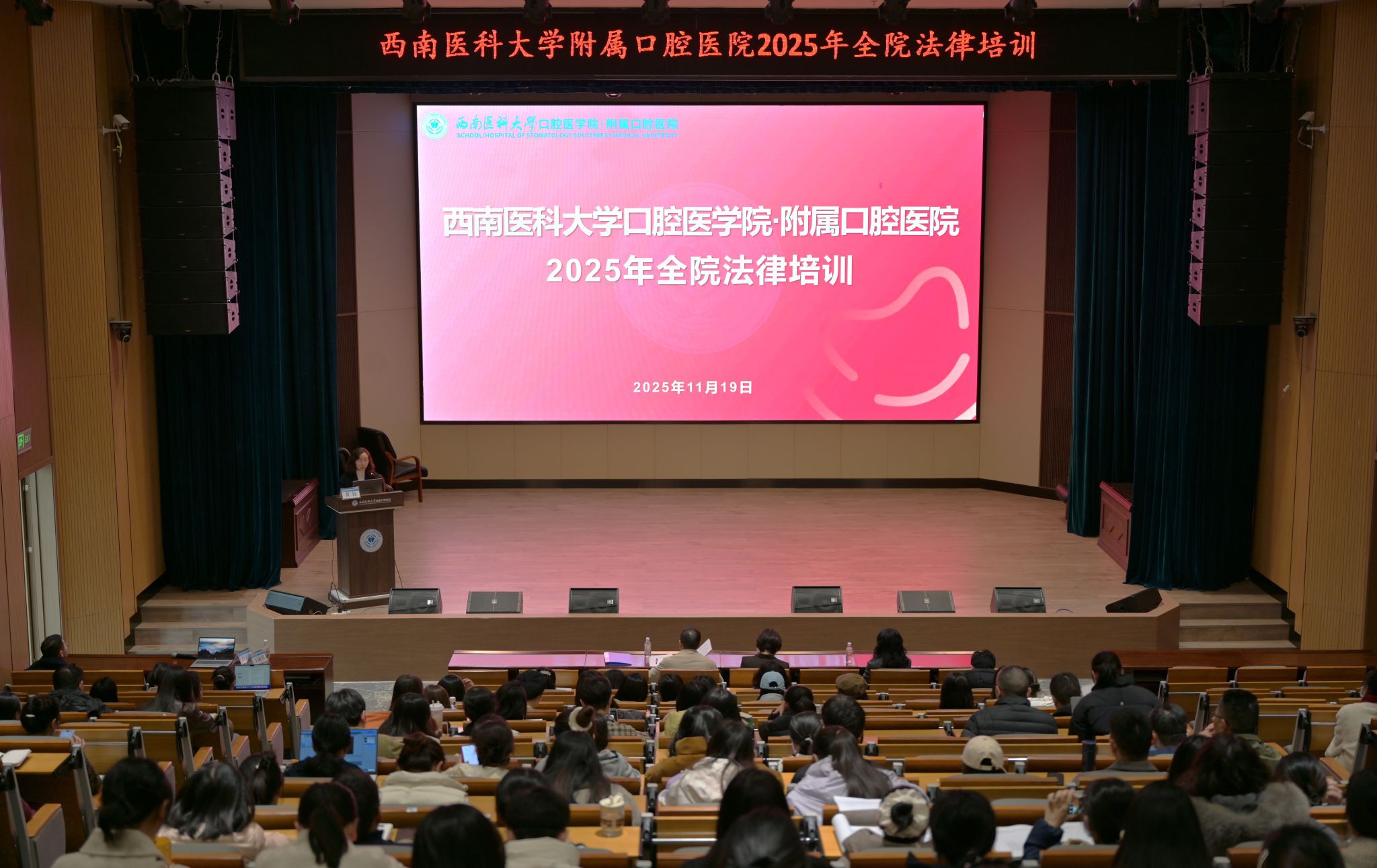 为深入贯彻落实习近平法治思想,扎实推进法治医院建设,进一步提升医务人员依法执业能力,切实筑牢医疗质量安全防线,附属口腔医院于11月19日组织开展了全院法律培训。本次培训由医院党委副书记、纪委书记黄钰主持,特邀西南医科大学法律诊所主任王毓倩博士作医疗质量安全核心制度系列解读,全院200余名职工参加。