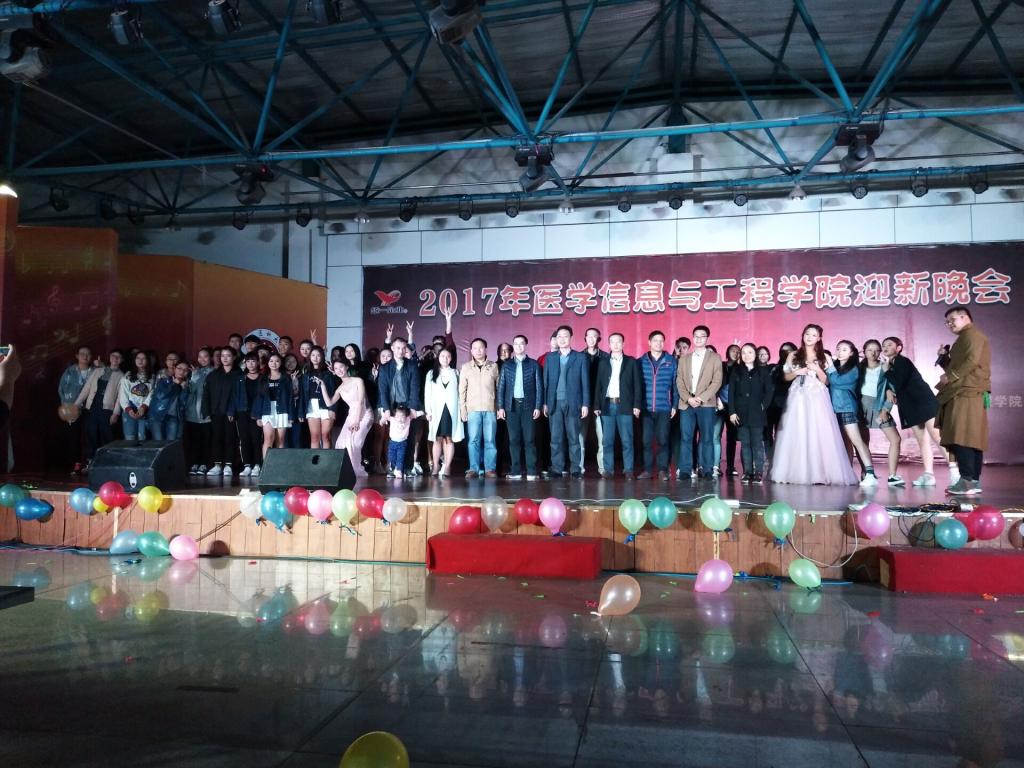 10月28日,医学信息与工程学院2017年迎新晚会在城北校区举行,医学信息与工程学院党总支书记杨富华、副院长潘宏、副书记杨勰,教研室教师及医学信息与工程学院全体学生共同观看了晚会。