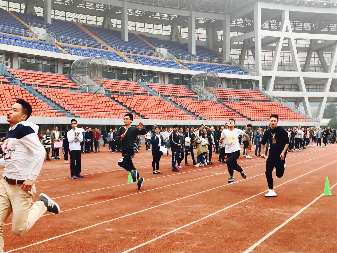 决赛当天,现场气氛高涨,来自围观同学的“加油”声此起彼伏,他们的热情和激动的情绪也感染了每一位在赛场上奔跑的运动健儿。参赛者们顽强拼搏,赛出了成绩,比出了风格。比赛期间,一办体育部的干事们也在认真执勤,维护赛场的秩序。