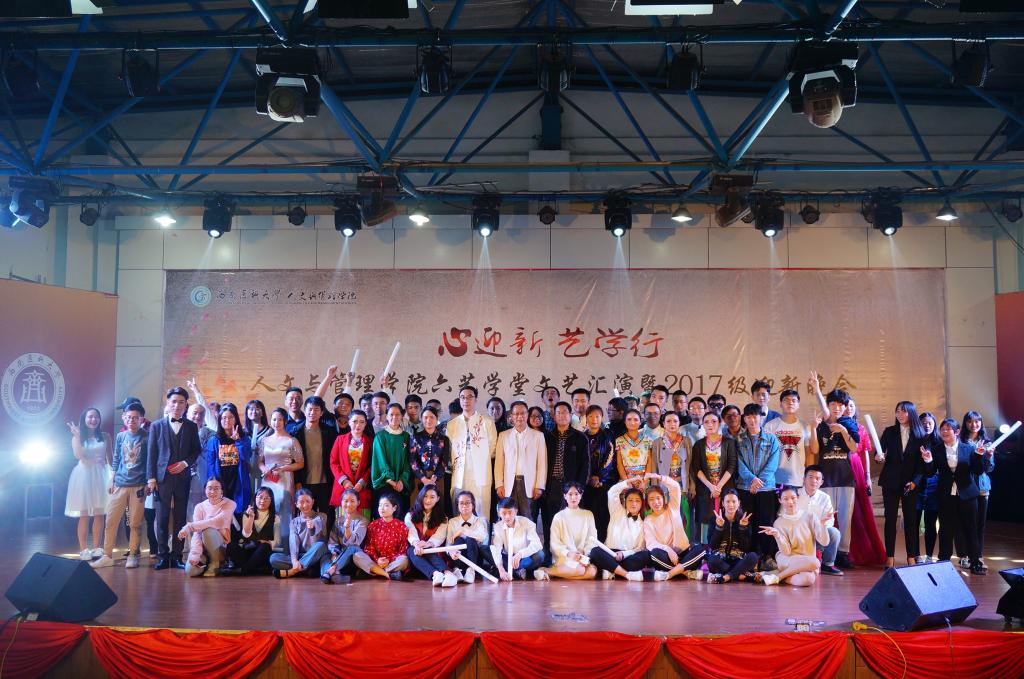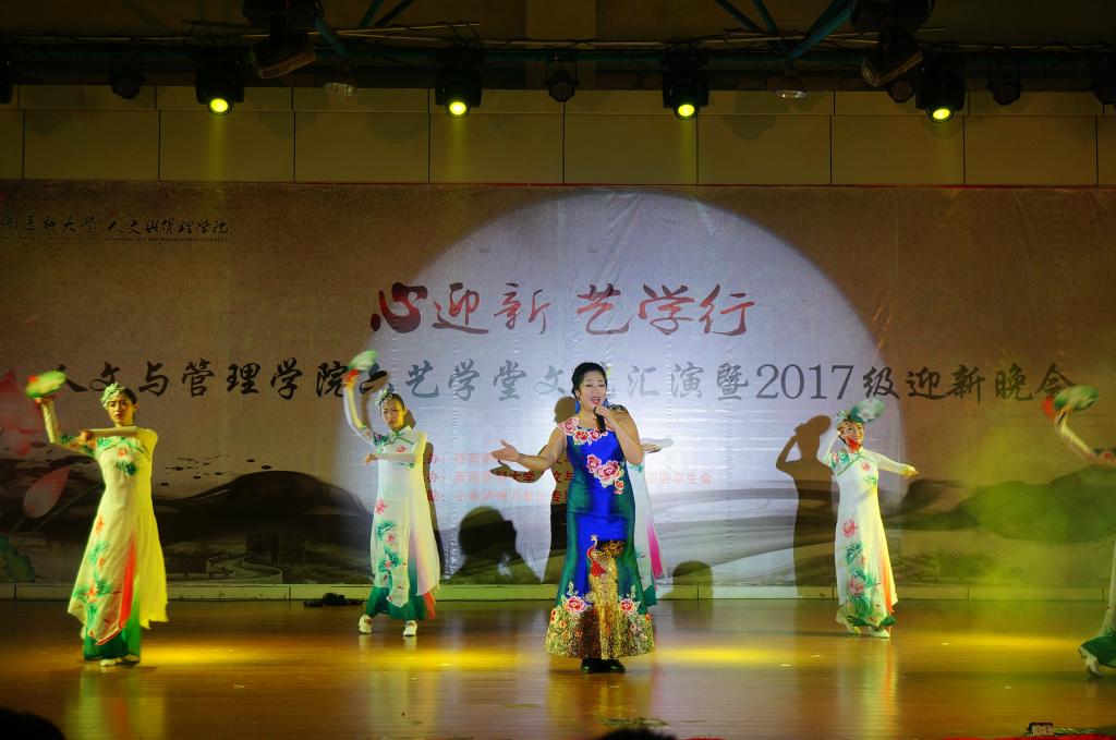 为欢迎2017级新同学的到来,在人文与管理学院六艺学堂精品校园文化活动创办三周年之际,11月8日晚,人文与管理学院在城北校区稻香苑学生活动中心举行了以“心迎新 艺学行”为主题的六艺学堂文艺汇演暨2017级迎新晚会。人文与管理学院院长赵成文、副院长谷满意、党总支副书记陈屹,学校医学影像系党政办公室主任刘秀、法学院科教科科长王贵勤以及六艺学堂各队伍指导教师、人文与管理学院全体师生到场观看晚会。