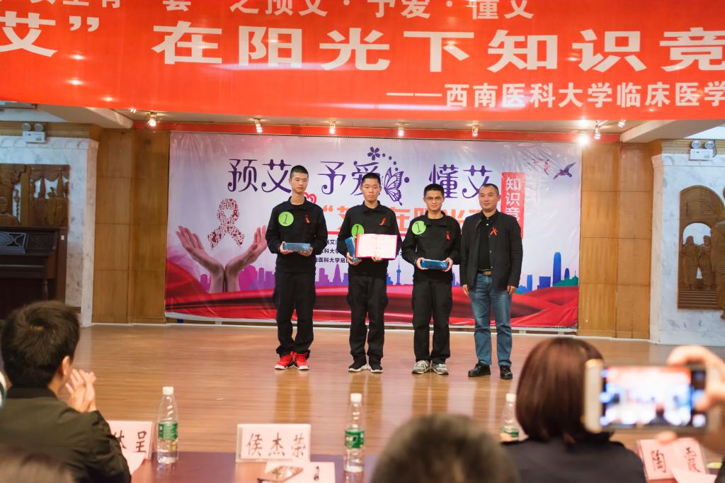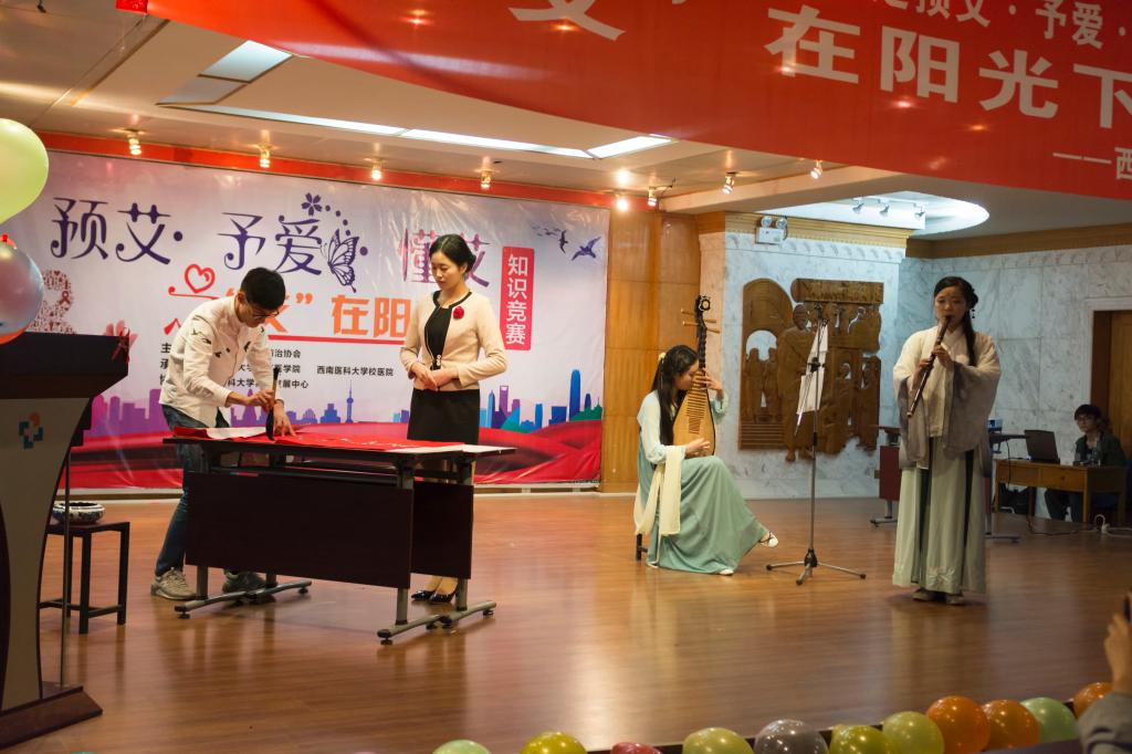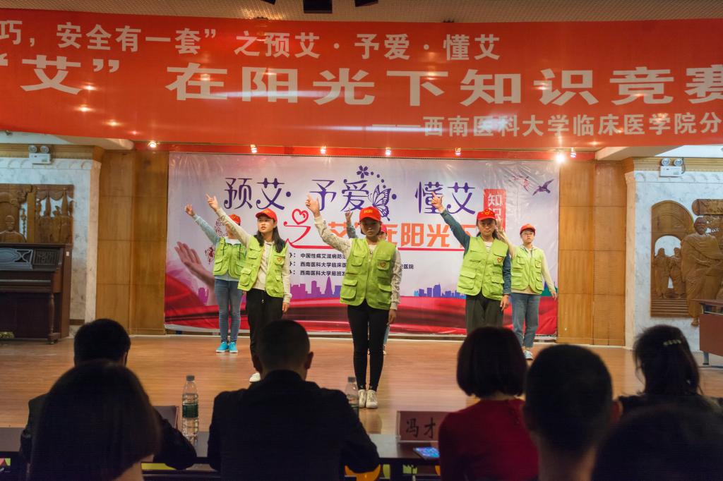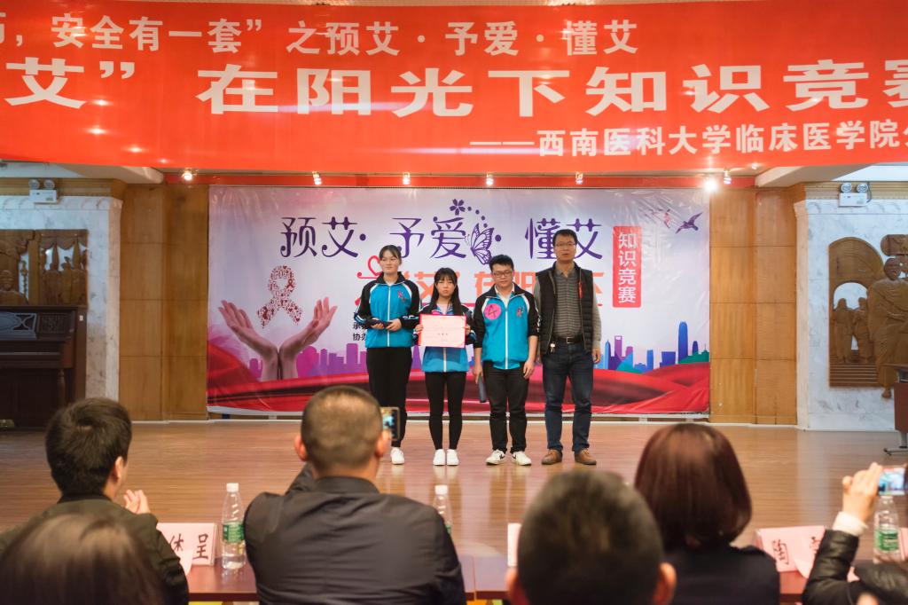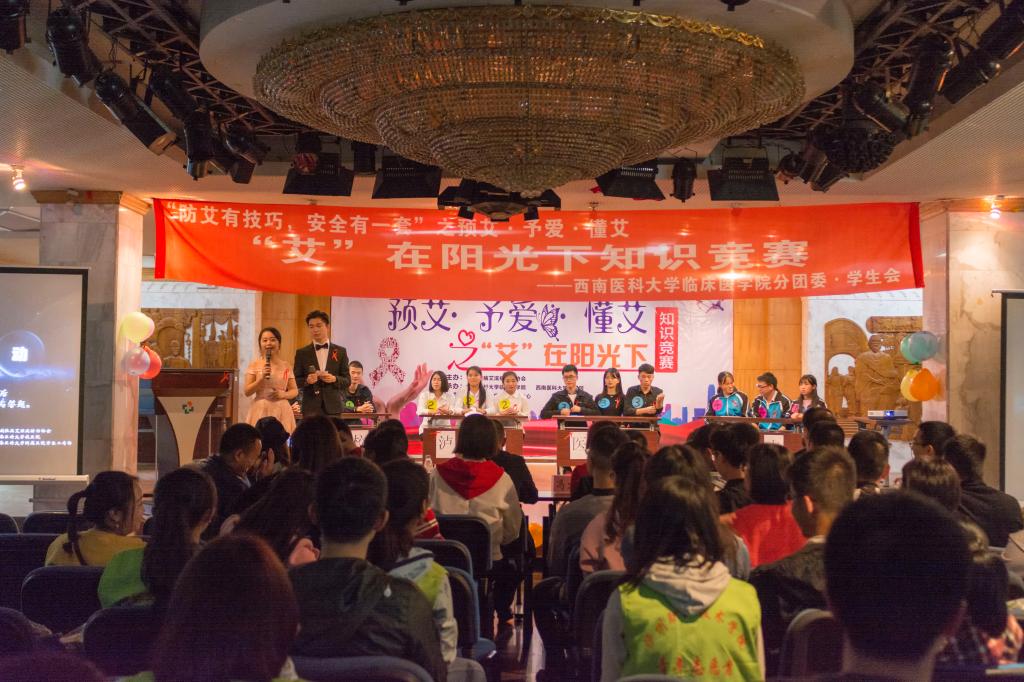 11月12日,由临床医学院主办的预艾·予爱·懂艾之“艾”在阳光下知识竞赛在附属医院工会大厅举行。泸州市疾控中心性病艾滋病防控科科长冯才碧,校医院副院长、卫生科副科长侯杰荣,临床医学院分团委书记陶霞及2013级第一团总支书记淡宇等参加了活动。来自西南医科大学、四川警察学院、泸州化工职业技术学院和泸州职业技术学院四所高校的代表队参与了对决。