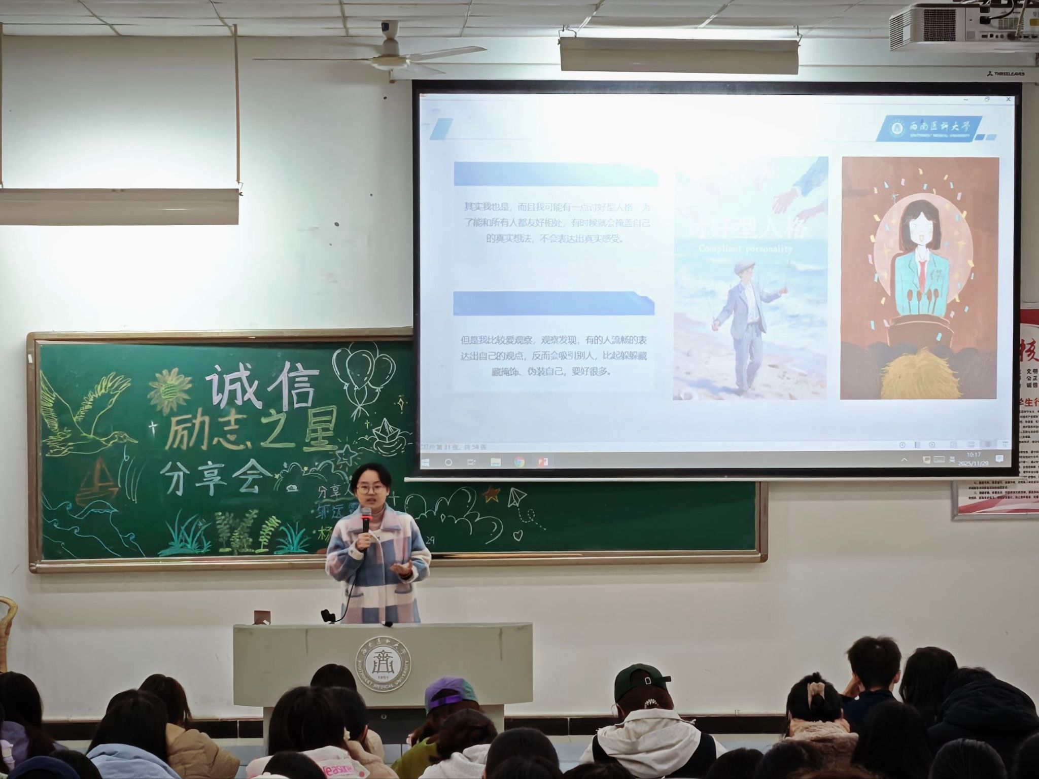 为弘扬诚信精神,树立励志榜样,营造积极向上的学风,11月29日,中西医结合学院在海川楼314教室成功举办2025年“诚信励志之星”分享会。