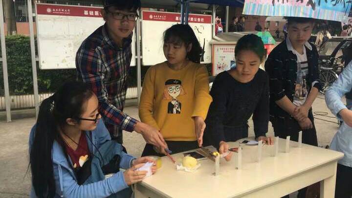 近日,基础医学院2016级第二办公室心理部主办的“与心相约,你我不孤单”心理活动月游园会在桂香苑门口举行。