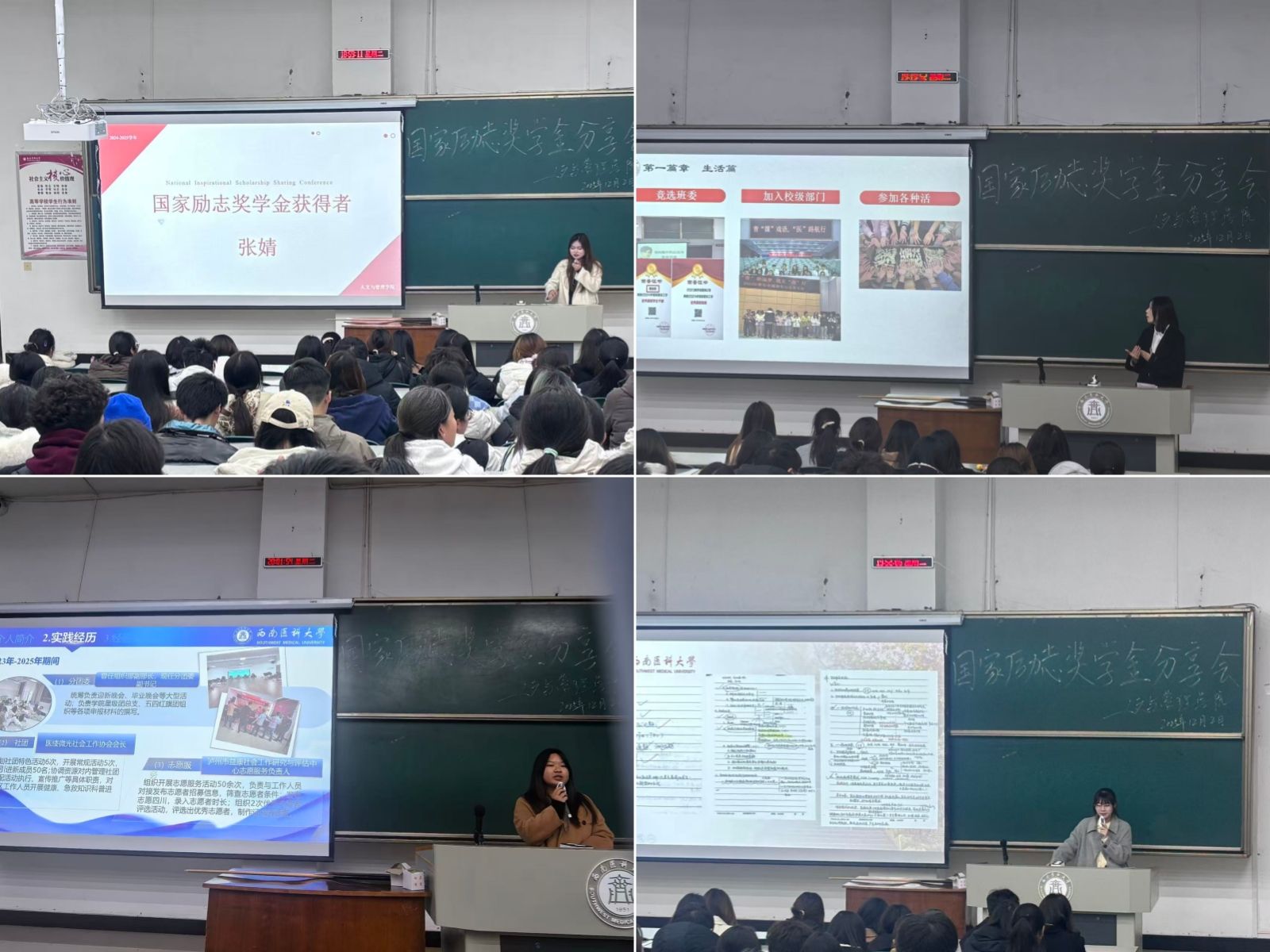 活动现场,国家励志奖学金获得者张婧同学围绕学习、实践、思想、经验四个方面,系统阐述了励志奖学金的评定标准及评分细则,重点强调该奖项由学业成绩与综合能力两部分构成;傅冰燕同学从日常生活、学习管理、竞赛参与三个维度,详细介绍了人际交往、部门工作、目标制定及竞赛申报的具体方法;王贤慧同学就专业课程选择、学习方式等实操性问题进行了深入讲解;舒敏同学结合自身实践经历,客观分析了经验积累的重要性。四位同学的分享内容翔实、方法具体,为在场学生提供了切实可行的参考,有效促进了经验交流与价值传递。