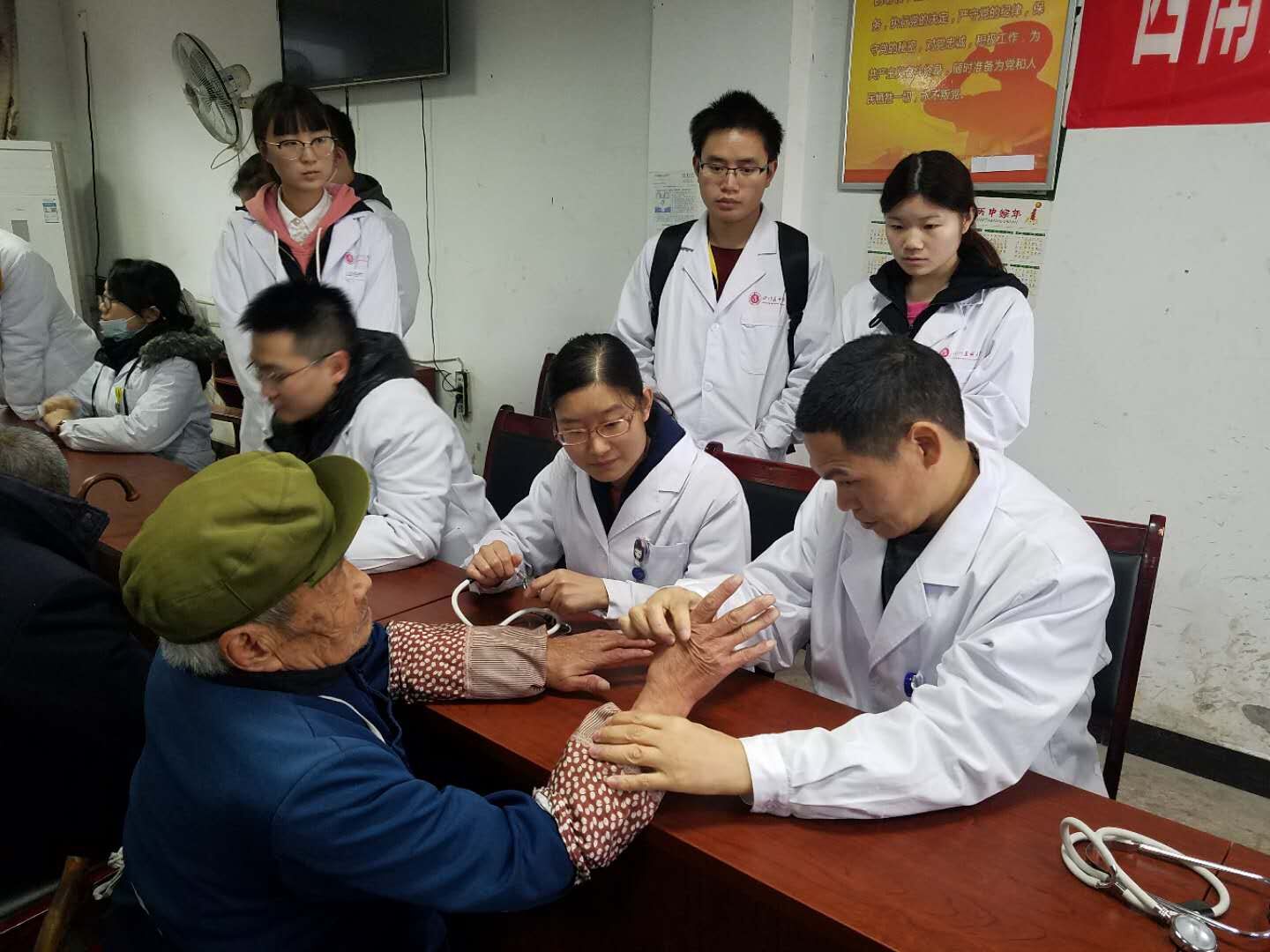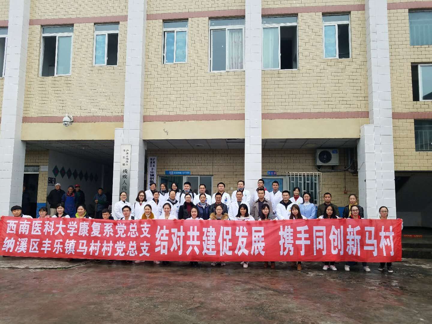 为深入开展 “两学一做”学习教育,充分发挥党员的先锋模范作用,11月17日上午,康复医学系党总支结合自身实际,组织西南医科大学附属医院第48、49党支部35名党员和入党积极分子医务人员、学生,前往纳溪区丰乐镇敬老院和残疾人托管中心开展了以“结对共建促发展 携手同创新马村”为主题的义诊、健康咨询和送爱心活动。
