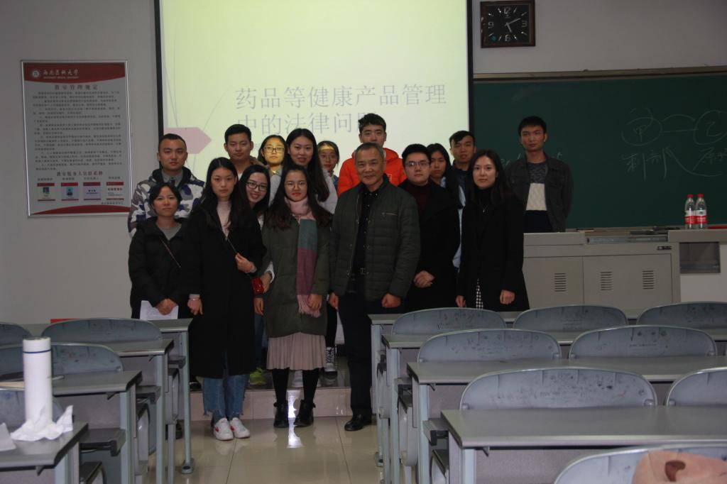 11月22日下午,由西南医科大学法学院、四川医事卫生法治研究中心、《医学与法学》编辑部、西南医科大学司法鉴定中心共同主办,西南医科大学医事法律研究会承办的“医学与法学”论坛,邀请到北京市中伦文德(成都)律师事务所律师、中国药学会理事、四川省药学会副理事长、成都市律师协会医专委副主任、四川大学华西药学院、成都中医药大学、江西中医药大学、四川省医事法治研究中心客座教授宋民宪担任论坛第44讲的主讲嘉宾,为大家作了一场题为“药品等健康产品管理中的法律问题”的精彩讲座。法学院各教研室老师、2017级研究生、2013级本科学生参加了本次讲座。讲座由刘霞主持。