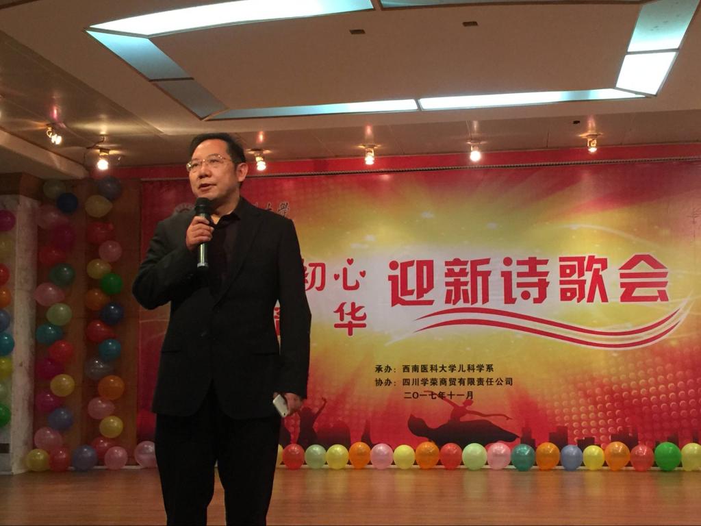 刘文君教授首先代表系部热情致辞,向学院2017级研究生和本科生表示衷心的祝贺和热烈的欢迎,希望同学们在校期间能够全面提升综合素质,做有理想、有追求、有担当、有作为、有品质、有修养的大学生,为实现中国梦贡献力量。晚会第一篇章“青年的光彩”,儿科研究生表演了欢快和谐的合唱《相亲相爱的一家人》,儿科党支部带来了展现医生大爱的情景剧表演《和你一样》,表达着深切的希望和祝福,2017级本科生带来励志歌曲《平凡之路》吉他弹唱;第二篇章“诗的征程”,展示民族团结的《彝海结盟》情景剧,《生如夏花》中英文诗歌朗诵都展现出儿科学生的自信和对未来无限的希望。第二篇章后的“你比我猜”的游戏环节,师生共同参与,将晚会推向了高潮,现场气氛热烈。第三篇章“时代的魅力”,带有时空感的诗朗诵《诗意人生》展现了儿科学子多才多艺、自信昂扬的风采,也为本场晚会画上了圆满的句号。