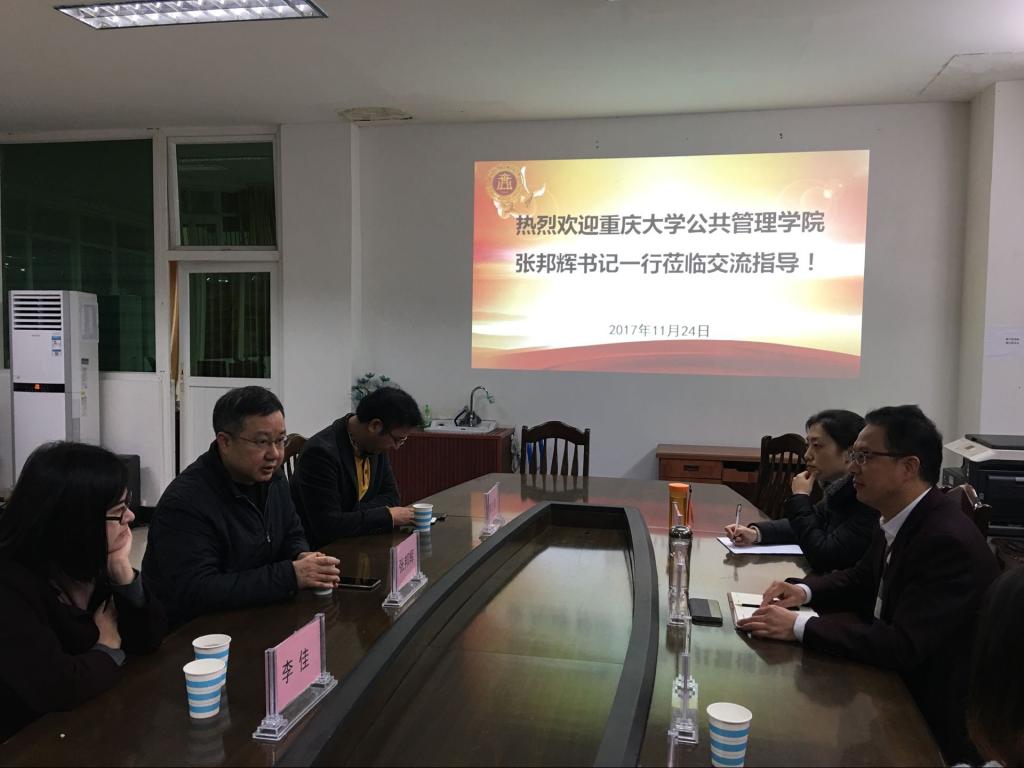11月24上午,重庆大学公共管理学院受邀由党委书记张邦辉带队到我校人文与管理学院就人才培养、MPA建设等工作开展交流座谈。人文与管理学院院长赵成文、副院长谷满意、MPA教育办公室副主任喻涛、科教科科长吴岩等参加了座谈会。会议由赵成文院长主持。
