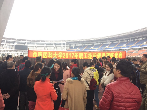为丰富教职工文体生活,日前,由学校工会主办,教辅后勤工会、机关工会承办,2017年职工徒步健身趣味活动及知识竞赛在奥体中心拉开帷幕。