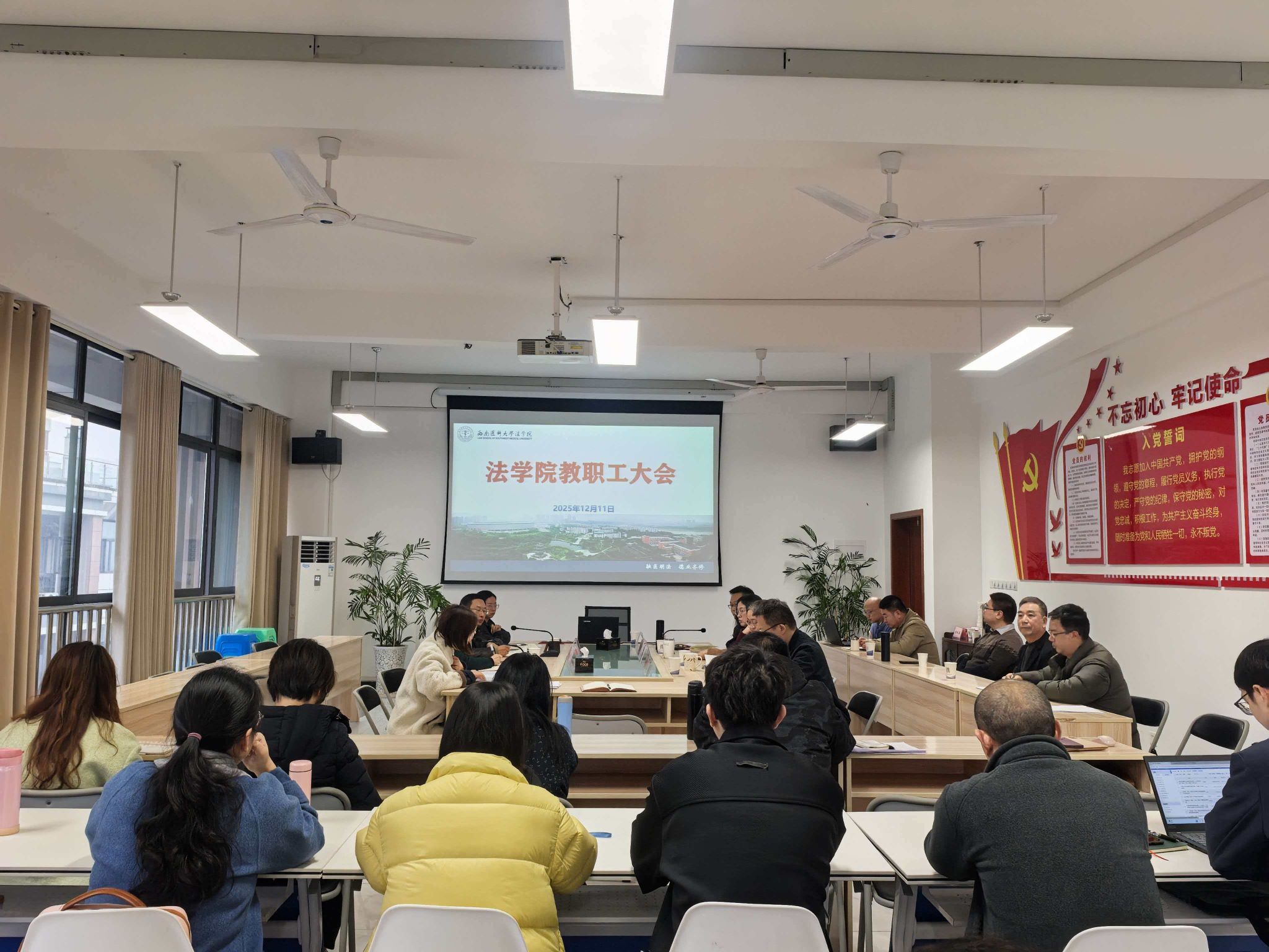 12月11日,法学院在文渊楼529会议召开教职工大会,全体教职工参会,会议由法学院党委副书记、院长罗刚主持。