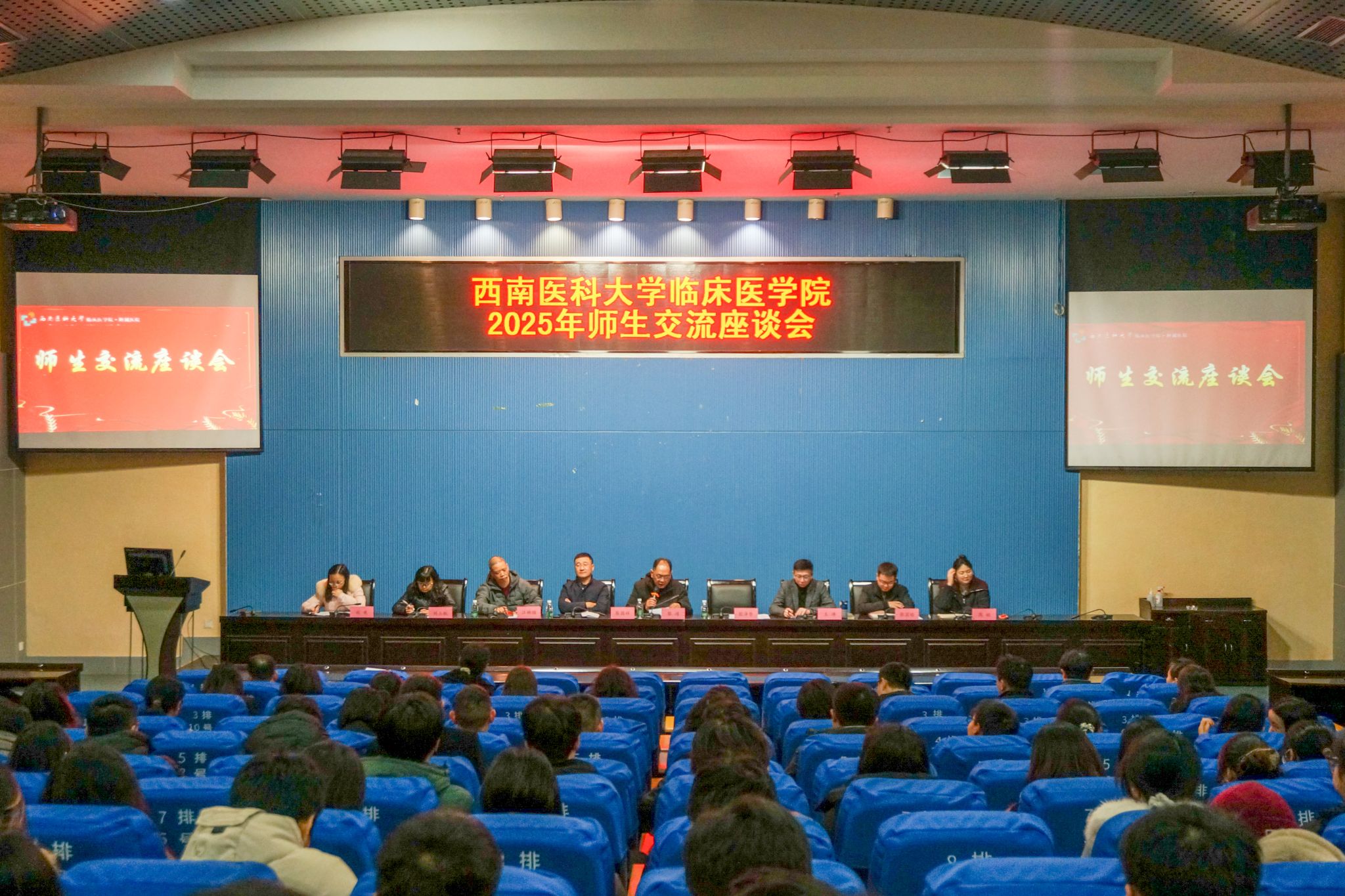 为构建高效畅通的师生沟通平台,12月11日,临床医学院在忠山校区学术报告厅举办师生交流座谈会。本次座谈会由临床医学院学生工作部主办,临床医学院分团委·学生会承办。临床医学院·附属医院党委副书记、工会主席黎靖,学生党总支书记殷泽登,附属医院教务部部长蔡国祥,学生工作部部长王涛、各年级主任辅导员、教师代表及各年级学生代表参加座谈。