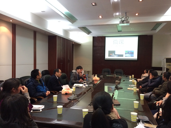 讲座中,刘剑从微电影的慨念到如何制作微电影,联系到目前前沿的电影知识引入“微课”的概念,以自己从教经历深入浅出的与我们分享了在课堂教学中“微课”的重要性以及目前“微课”的发展。期间,教师们也与刘剑交流探讨了教学方法和教学技能方面的问题。