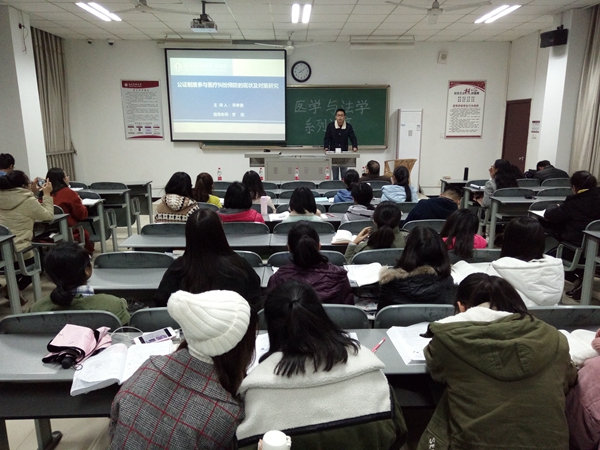 来自2016级王勇林同学进行了“适度医疗现实意义探析”为主题的讲座,从适度医疗的概念、适度医疗难以实现的原因、适度医疗现实意义探析三个方面进行了介绍。