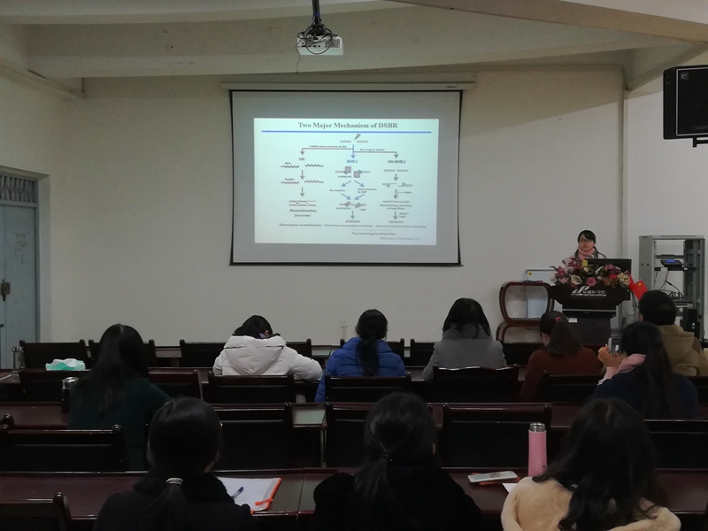 日前,基础医学院在城北校区院系会议室举办了第六期博士论坛,本次讲座由肿瘤医学研究所毛苹苏博士主讲。讲座题目为“端粒DNA损伤修复机制的研究”。